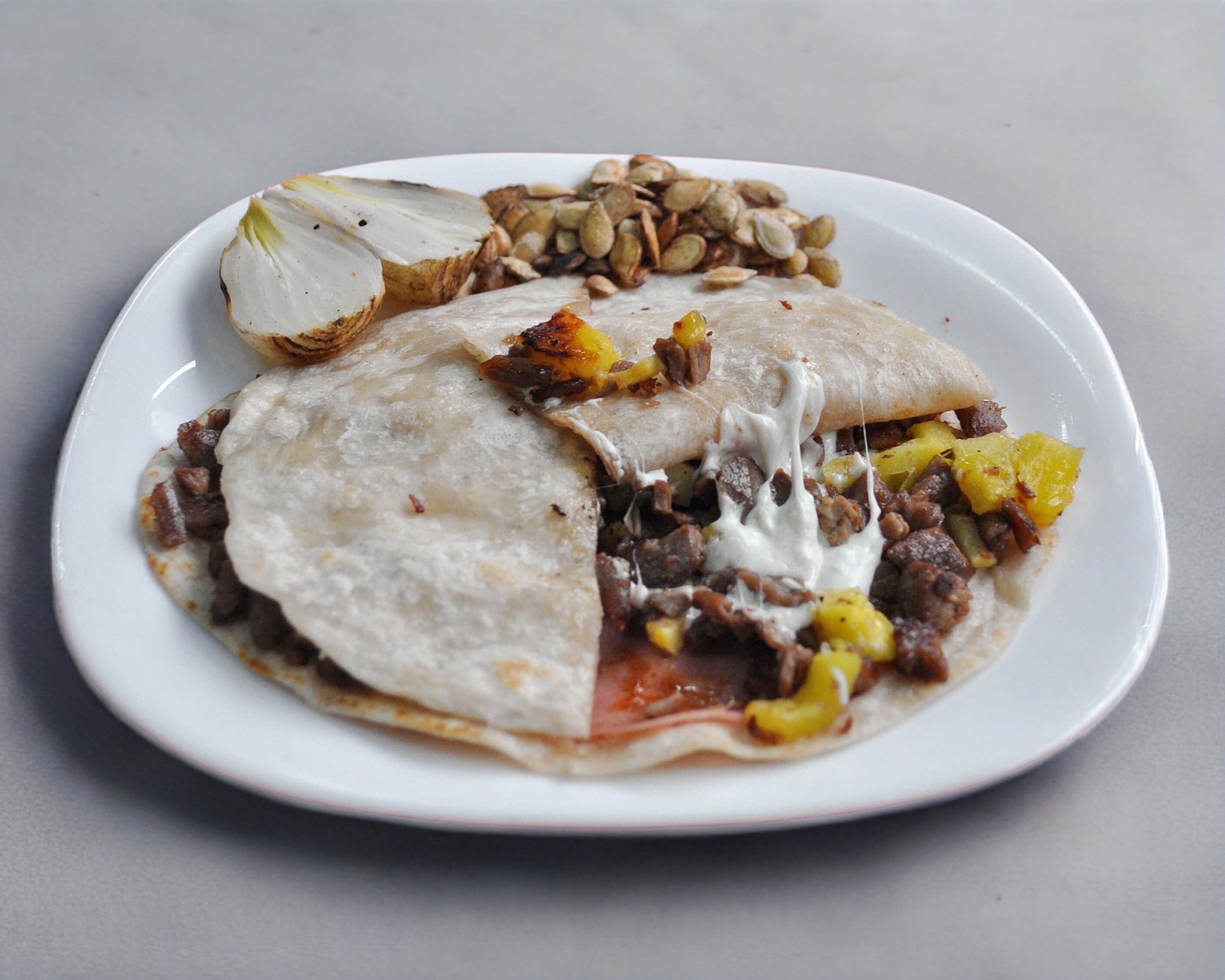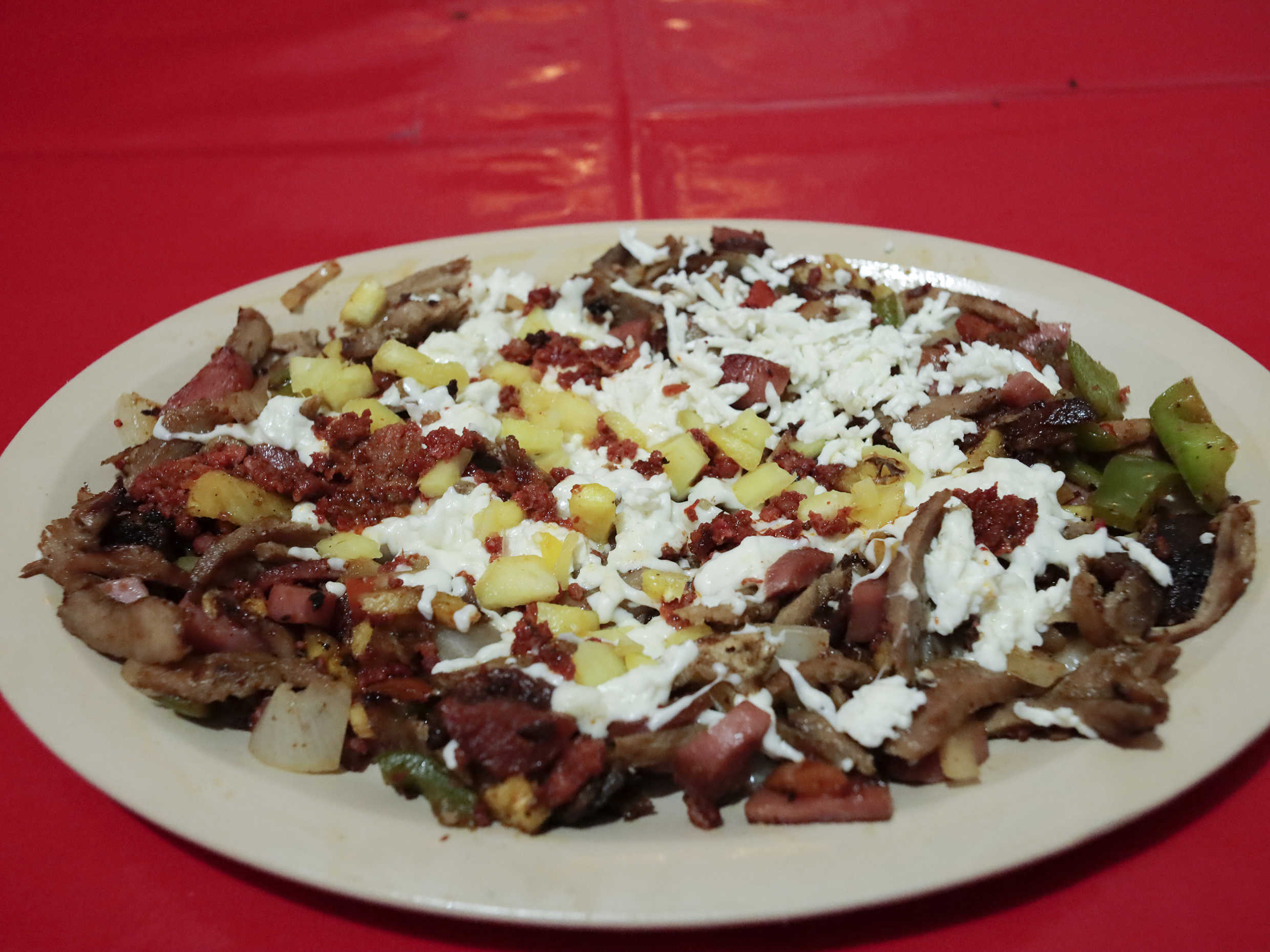 Incluye lechuga, cebolla, chiles en vinagre, jitomate y queso. Arrachera, jamón, piña y queso.