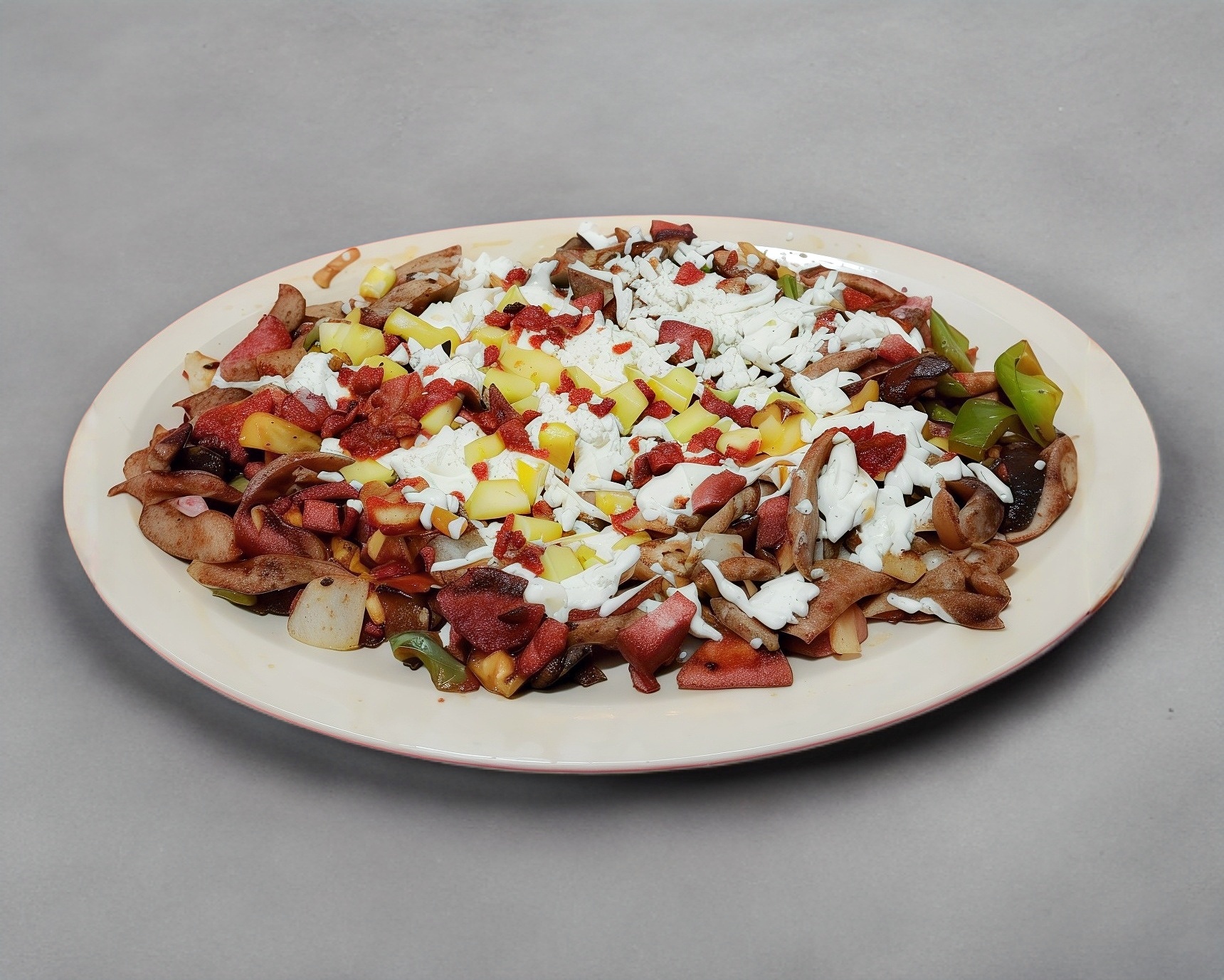 Incluye lechuga, cebolla, chiles en vinagre, jitomate y queso. Arrachera, tocino, salchicha, jamón, champiñones y queso.