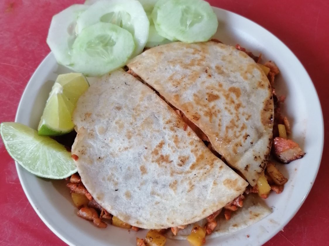 Pastor, piña y queso oaxaca, ya incluye tortillas.
