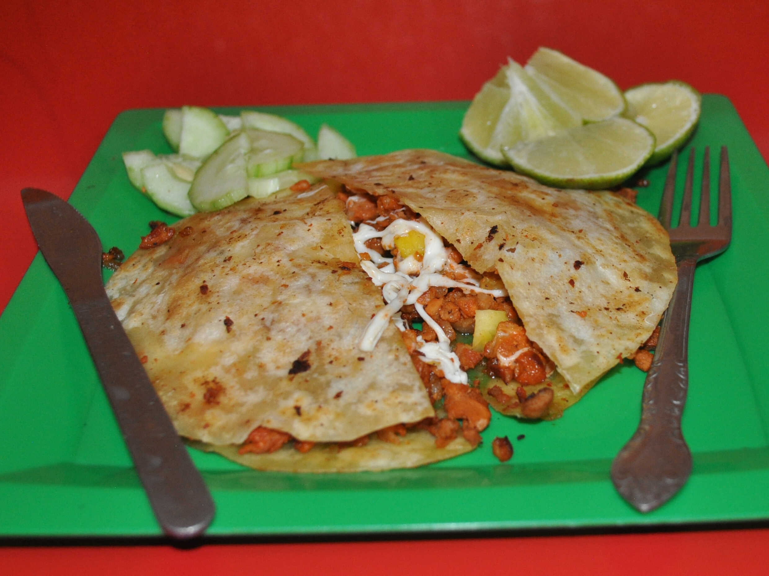 2 tortillas de harina variedad de carnes queso jamón y piña