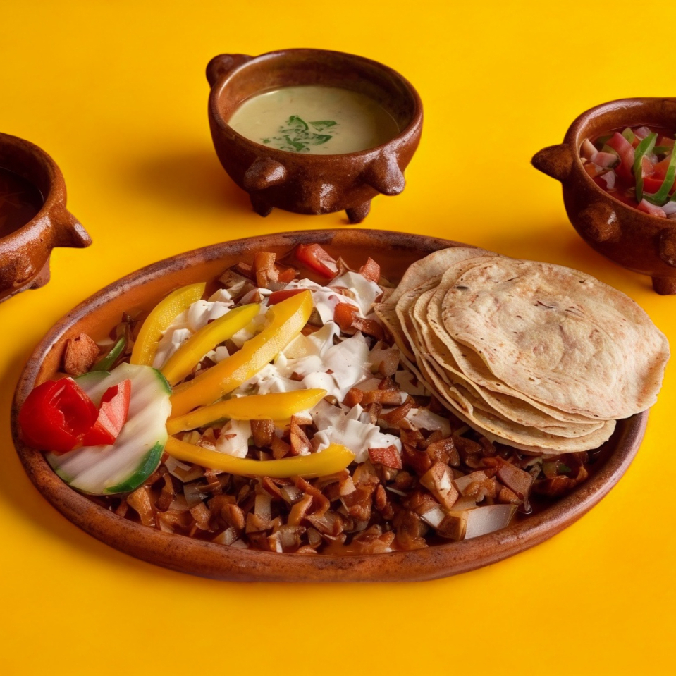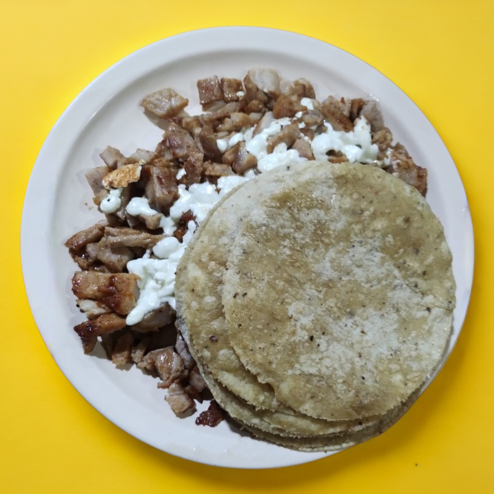 Chuleta, pastor, queso con 3 tortillas de harina, incluyen salsas al gusto.