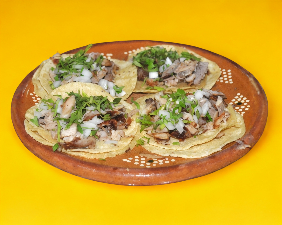 Pastor chuleta champiñón y queso en 2 tortillas de harina.
