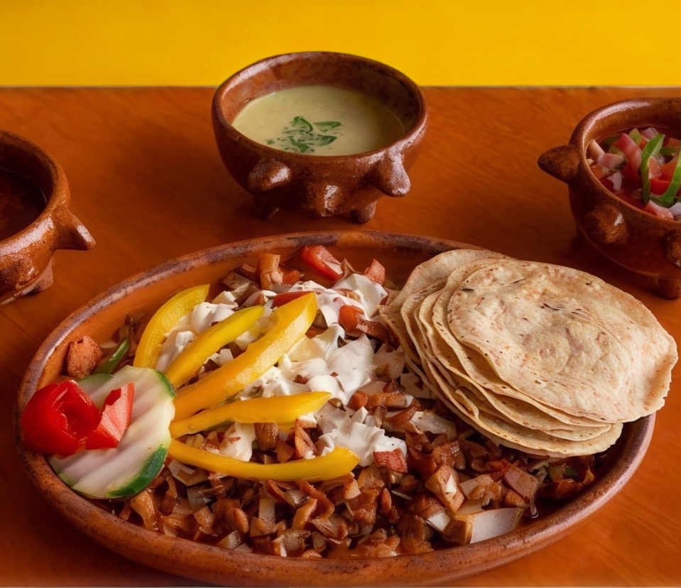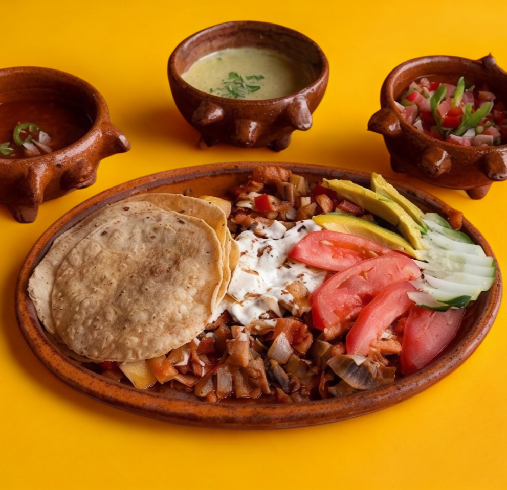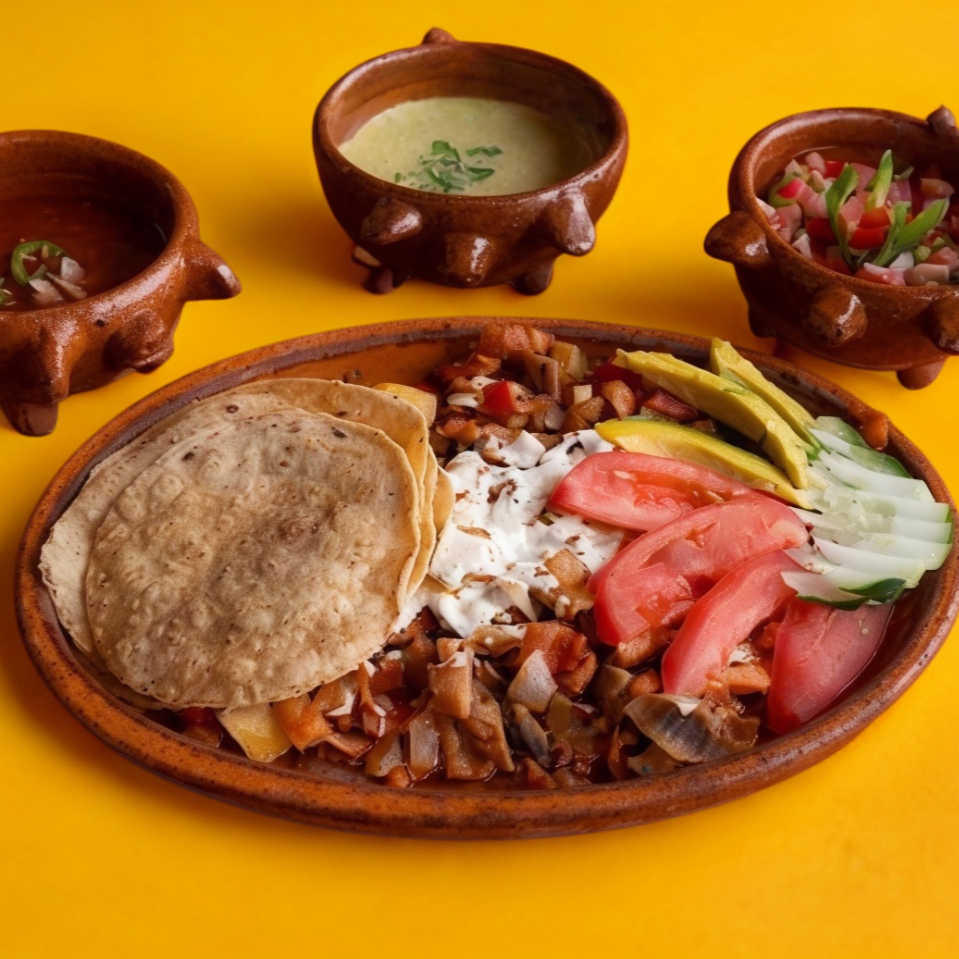 Cebolla, morrón, champiñón, piña, aguacate, jitomate y queso, incluyen salsas al gusto.
