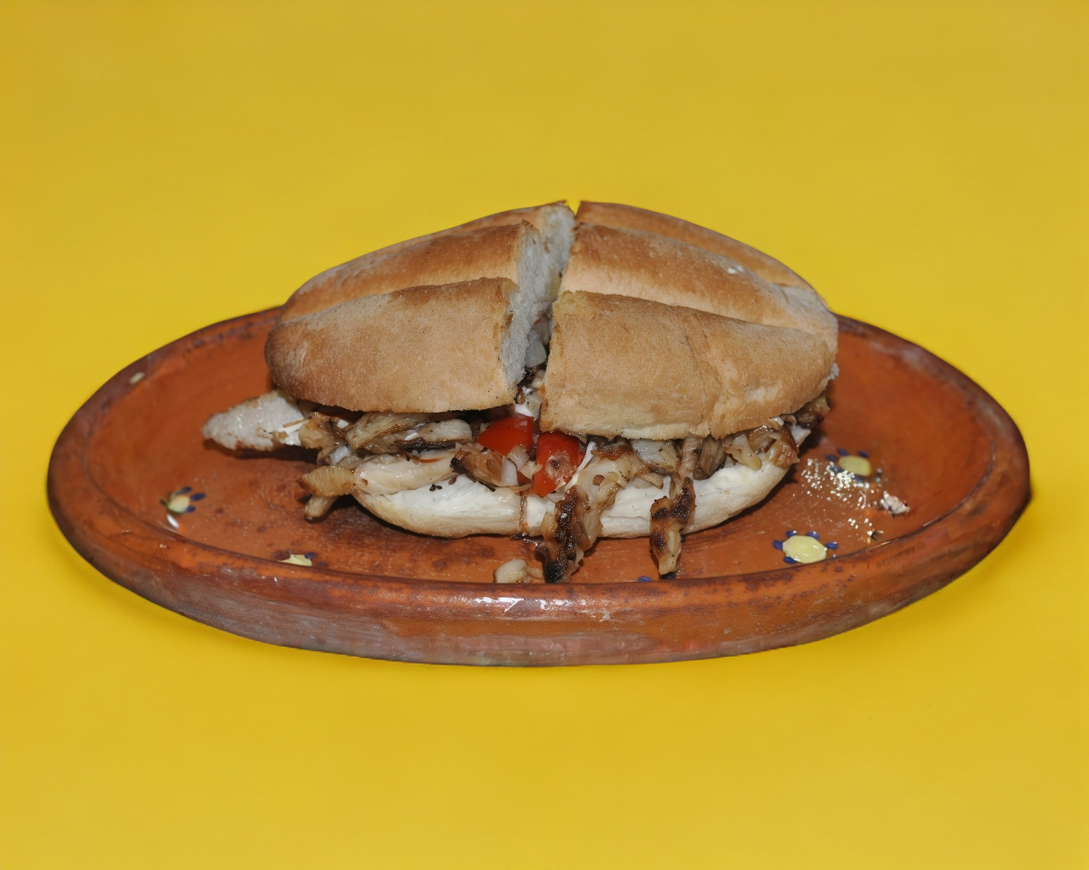 Bistec, morrón, cebolla y queso, incluyen salsas al gusto.