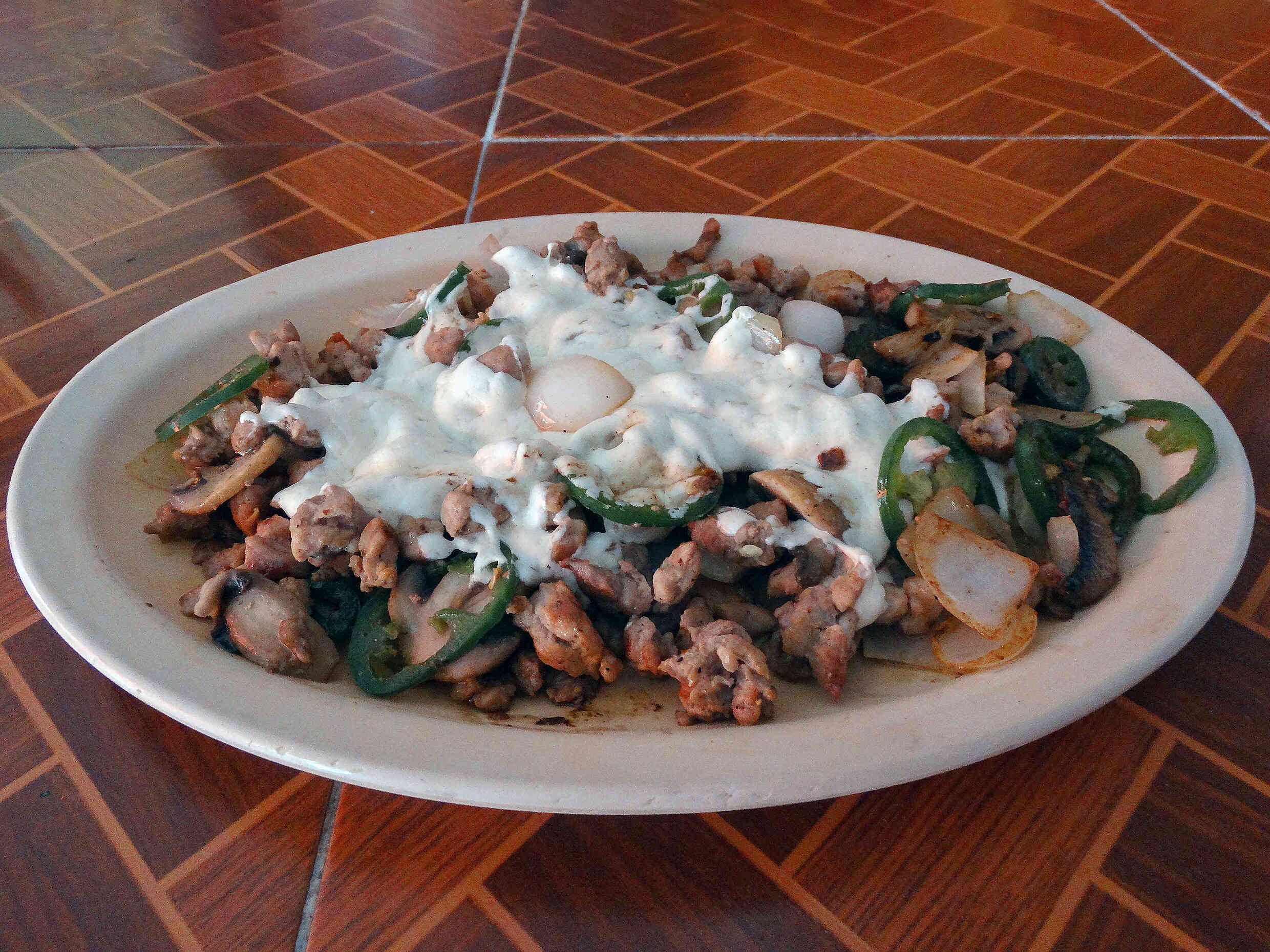 Champiñón, elote, jamón y queso, con opción a convertirlo en alambre completo.