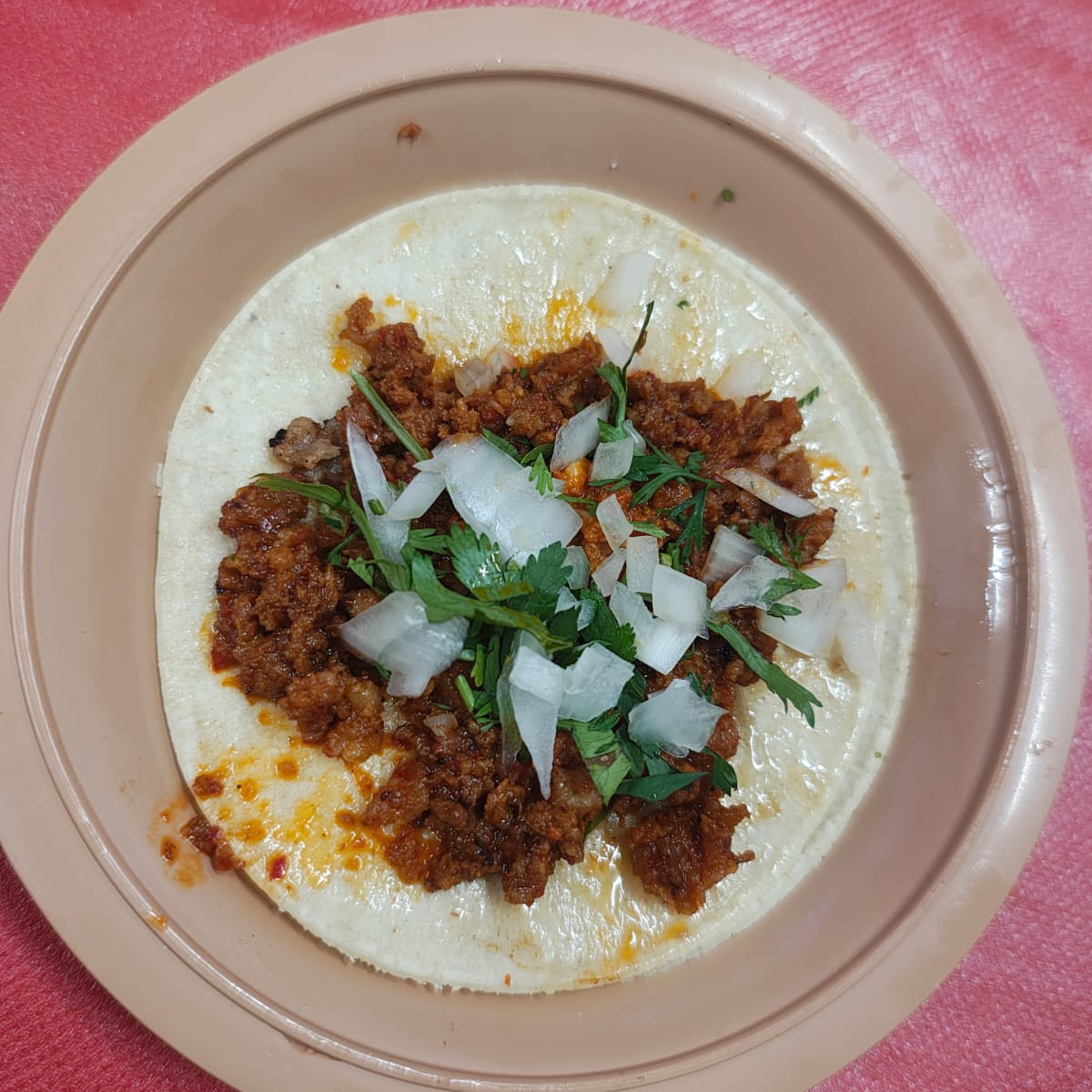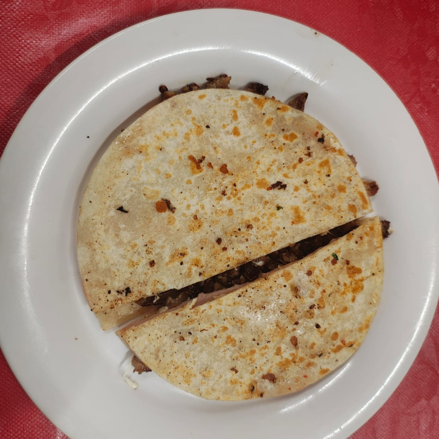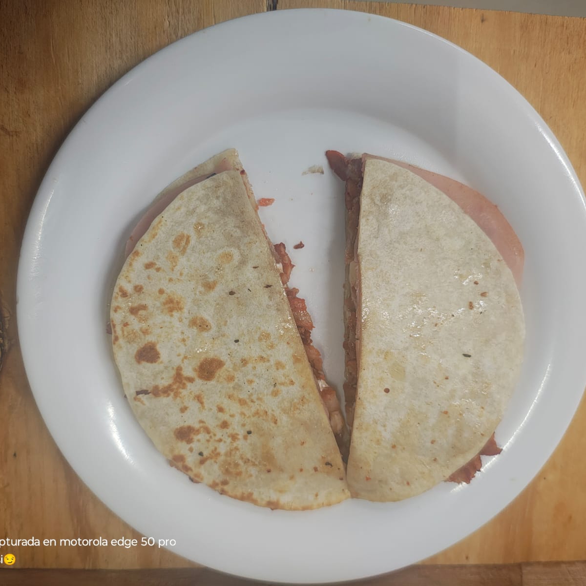 2 Tortillas de harina, carne al pastor, jamón y queso.