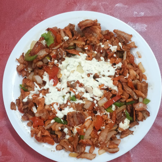 Carne al Pastor, chuleta, morrón, cebolla y queso.