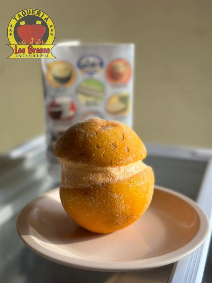 Cebolla, jitomate, aguacate, queso, mayonesa y carne de carbón. Telera partida en la mitad.