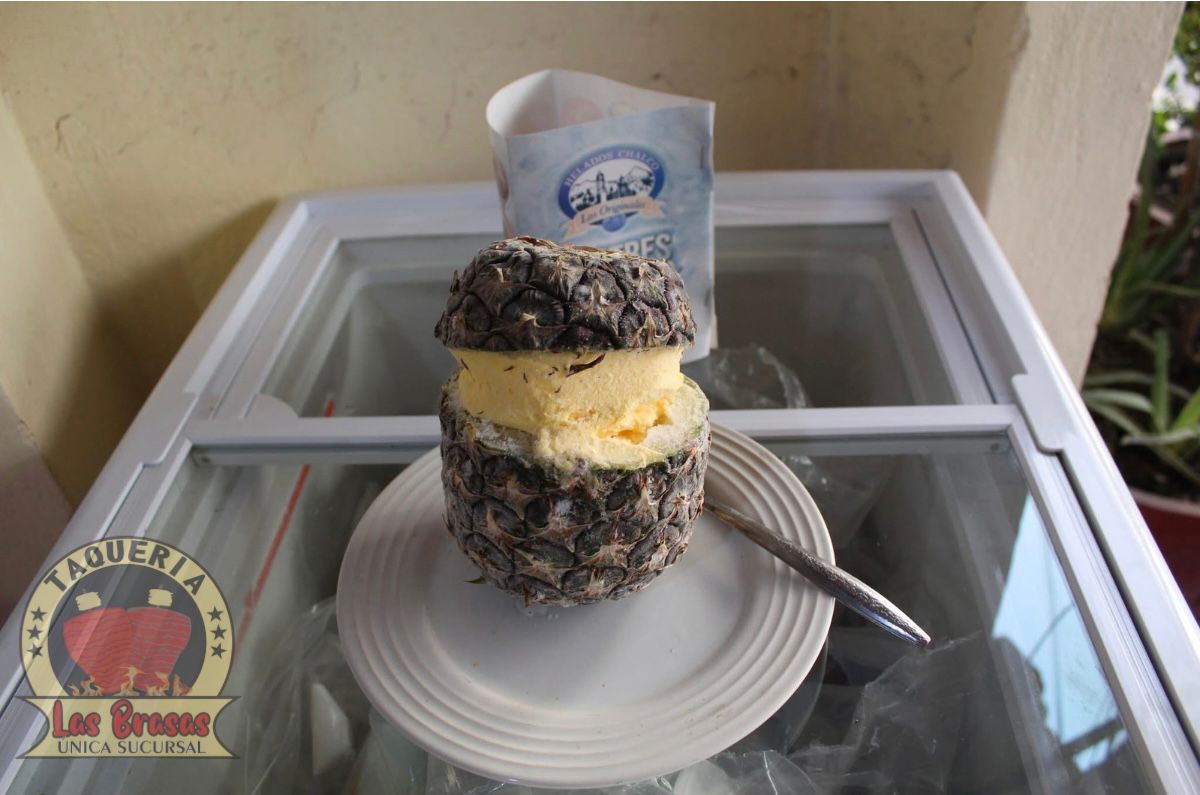 Carne al pastor, chuleta, piña, tocino, cebolla, morrón, aguacate y queso.