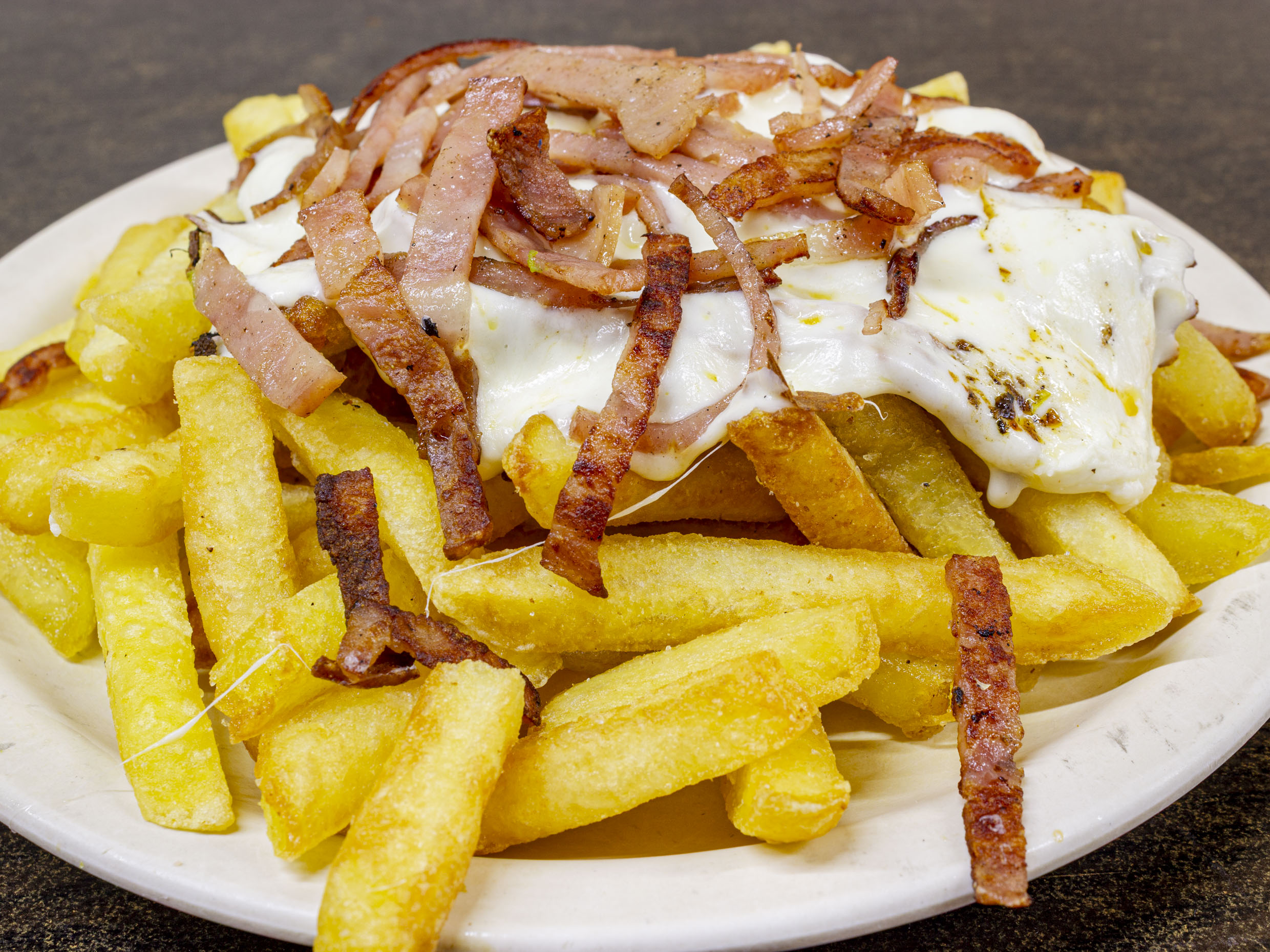 Papas, queso y tocino.