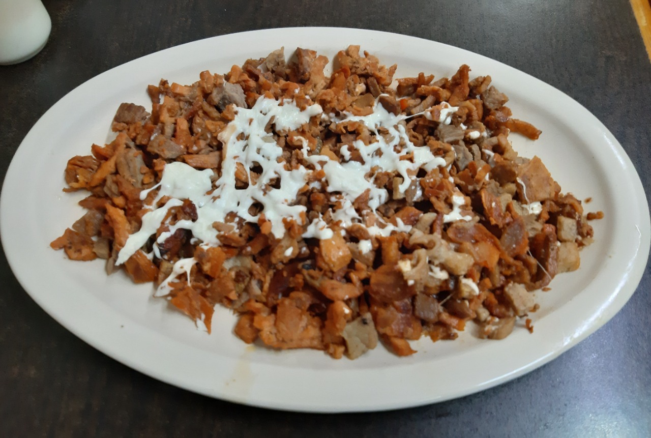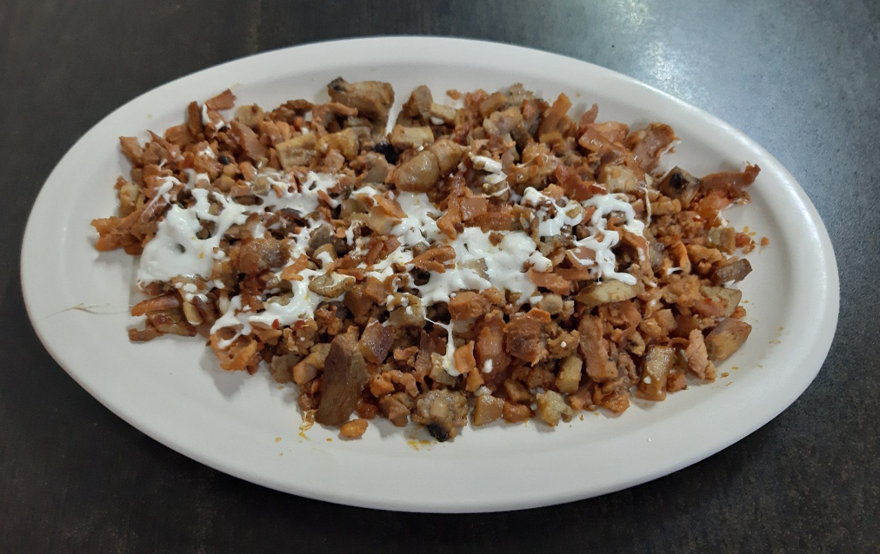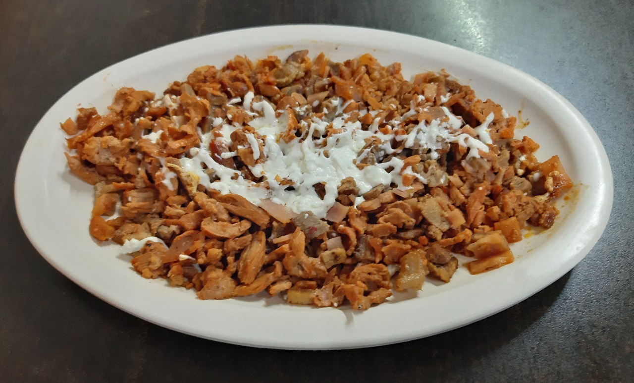 1 Plato personal- 260-300 gm de carne Pastor, bistec, chuleta y queso oaxaca, salsa de la casa