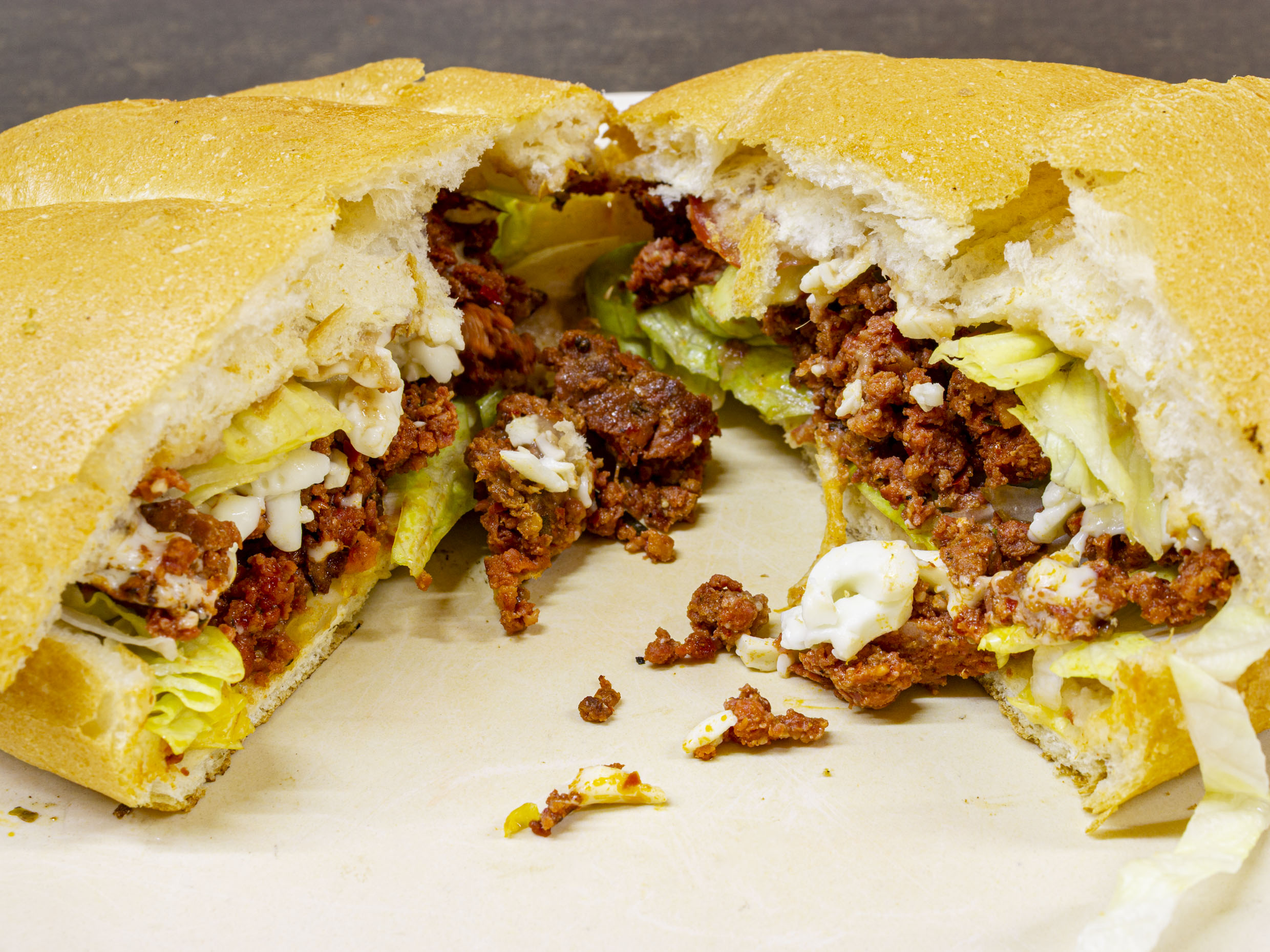 Lechuga, carne, quesos, aderezo.
