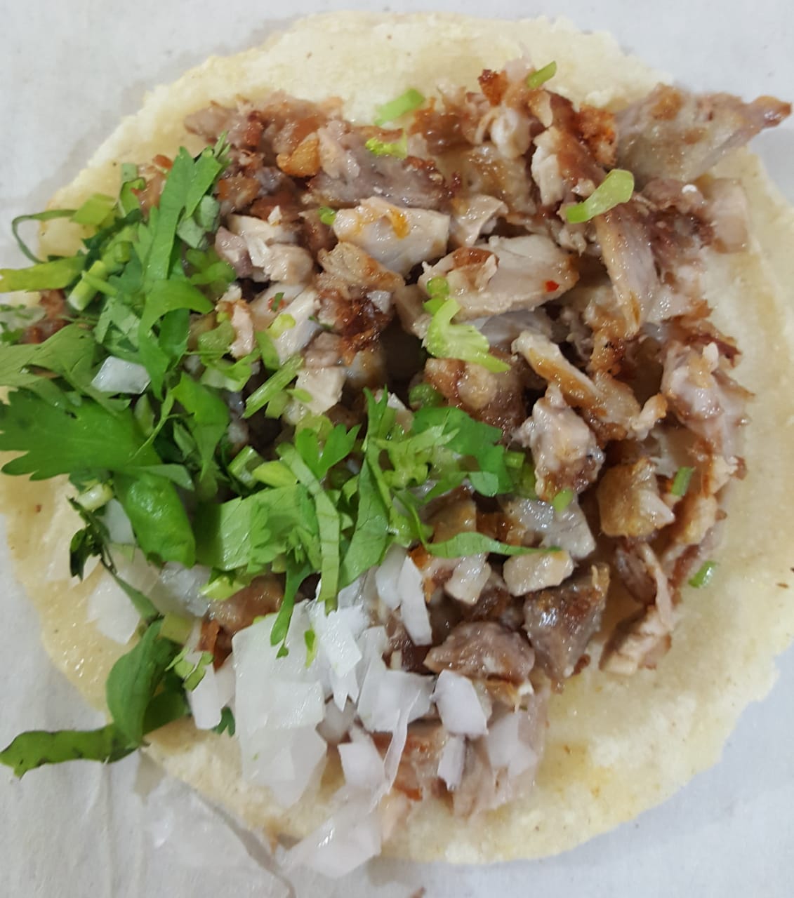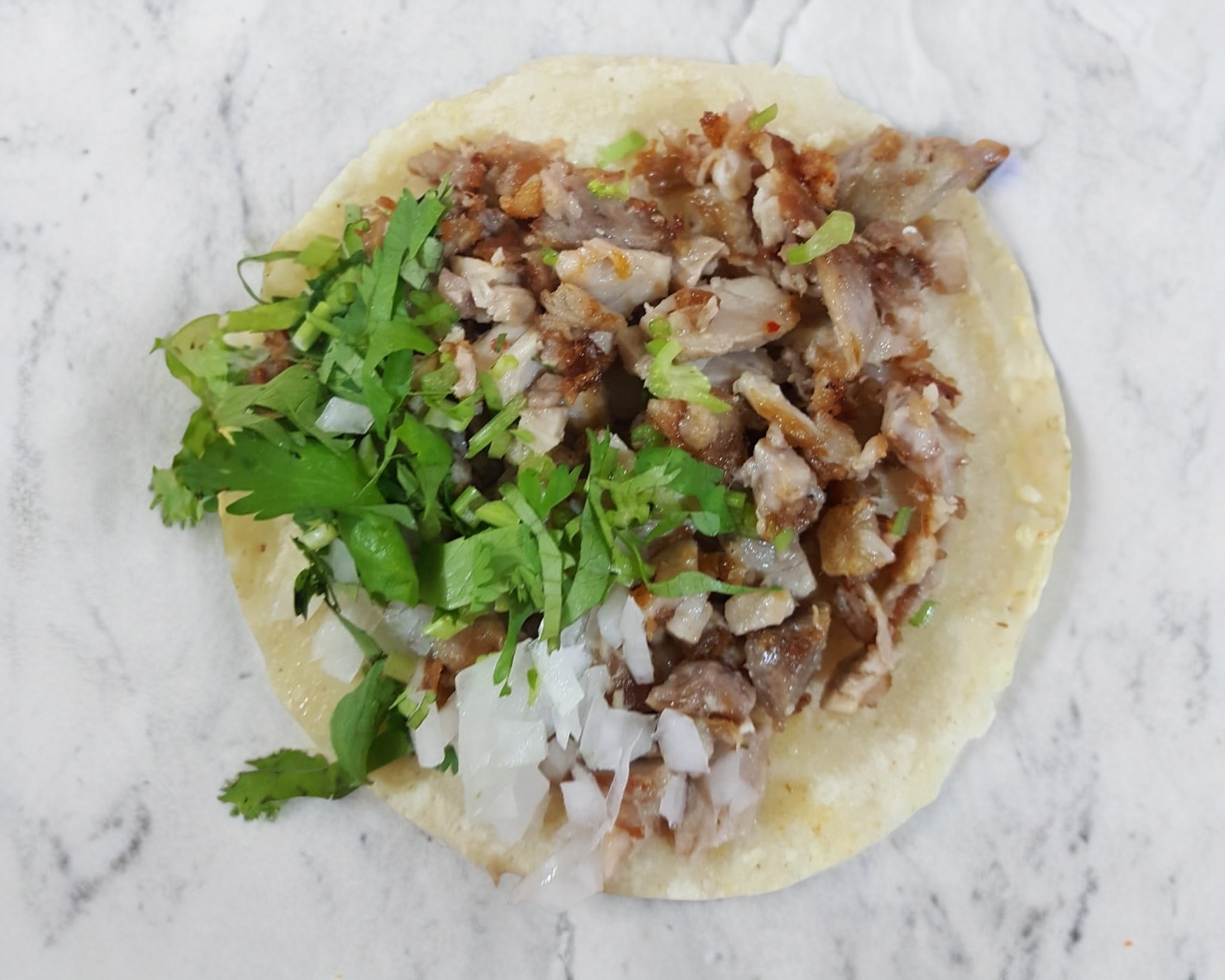 Taco de chuleta de cerdo en tortilla de maíz.