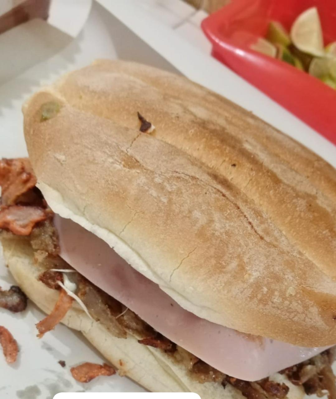 Torta de arrachera en pan de telera.