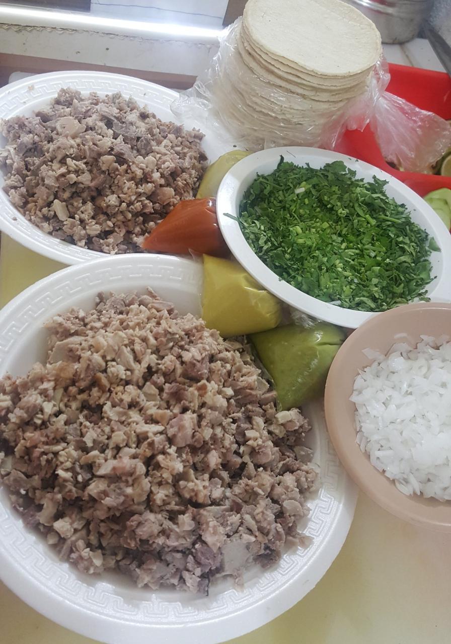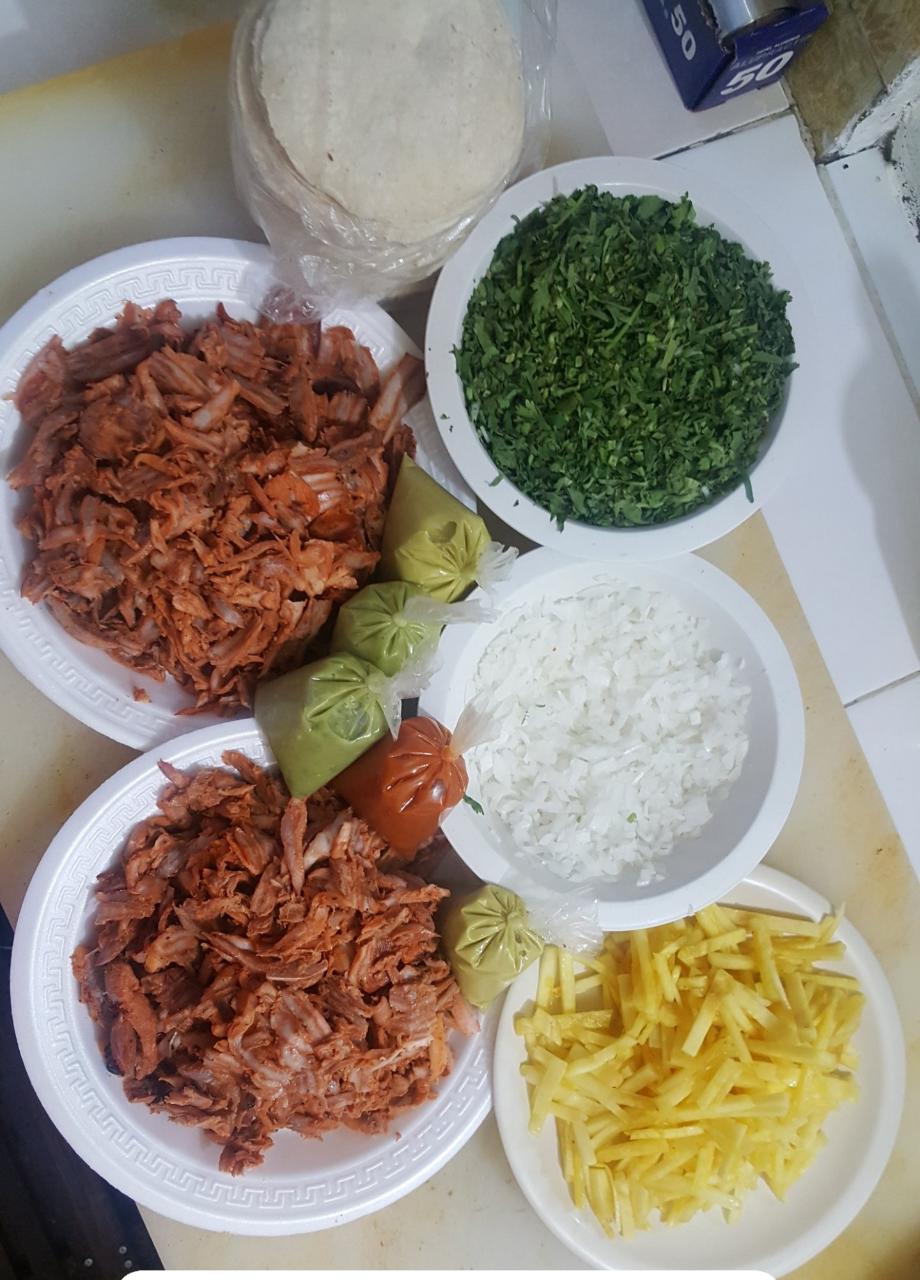 Incluye tortillas, salsas, limones, piña, cebolla y cilantro.