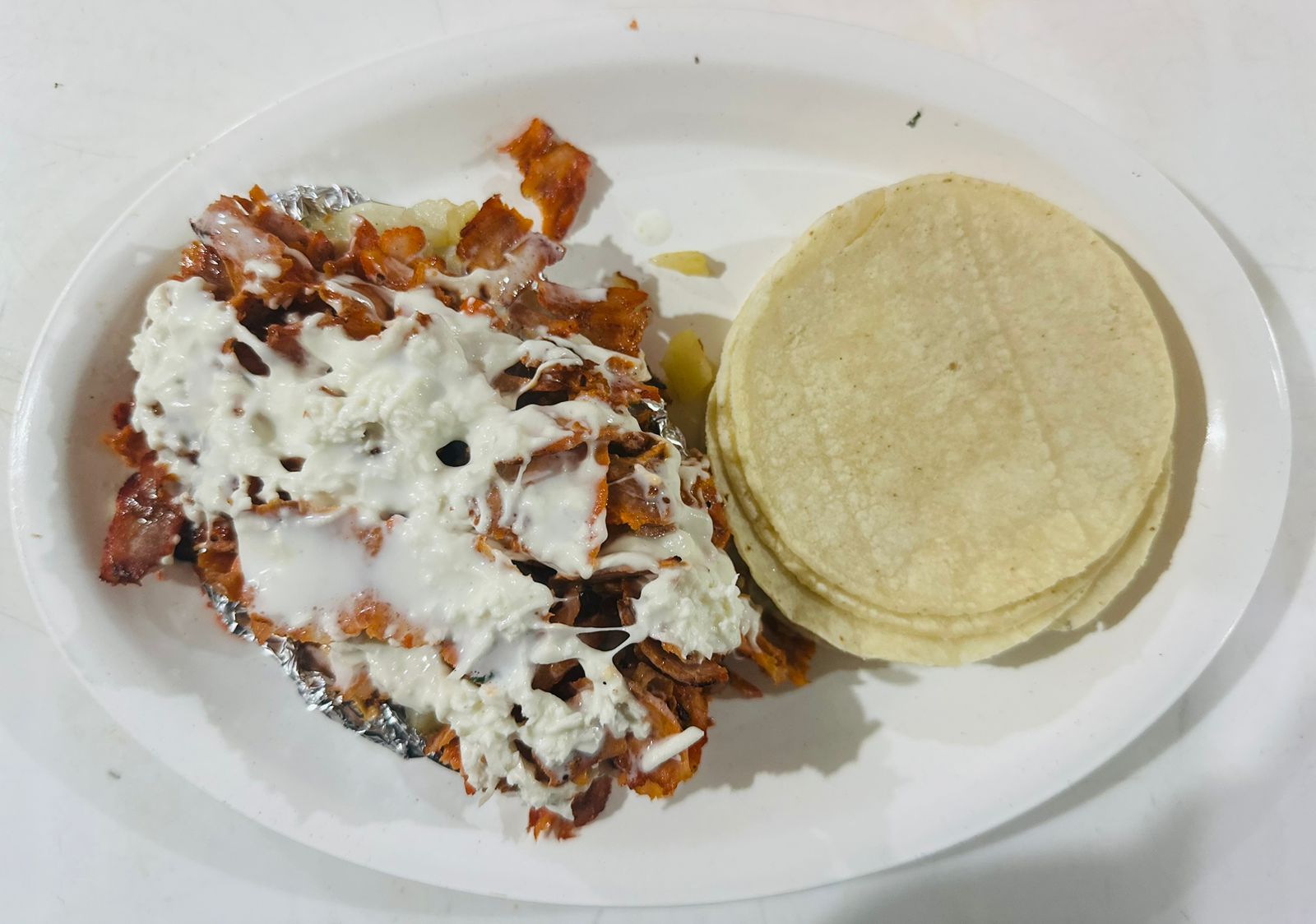 Tortilla de harina y pastor.