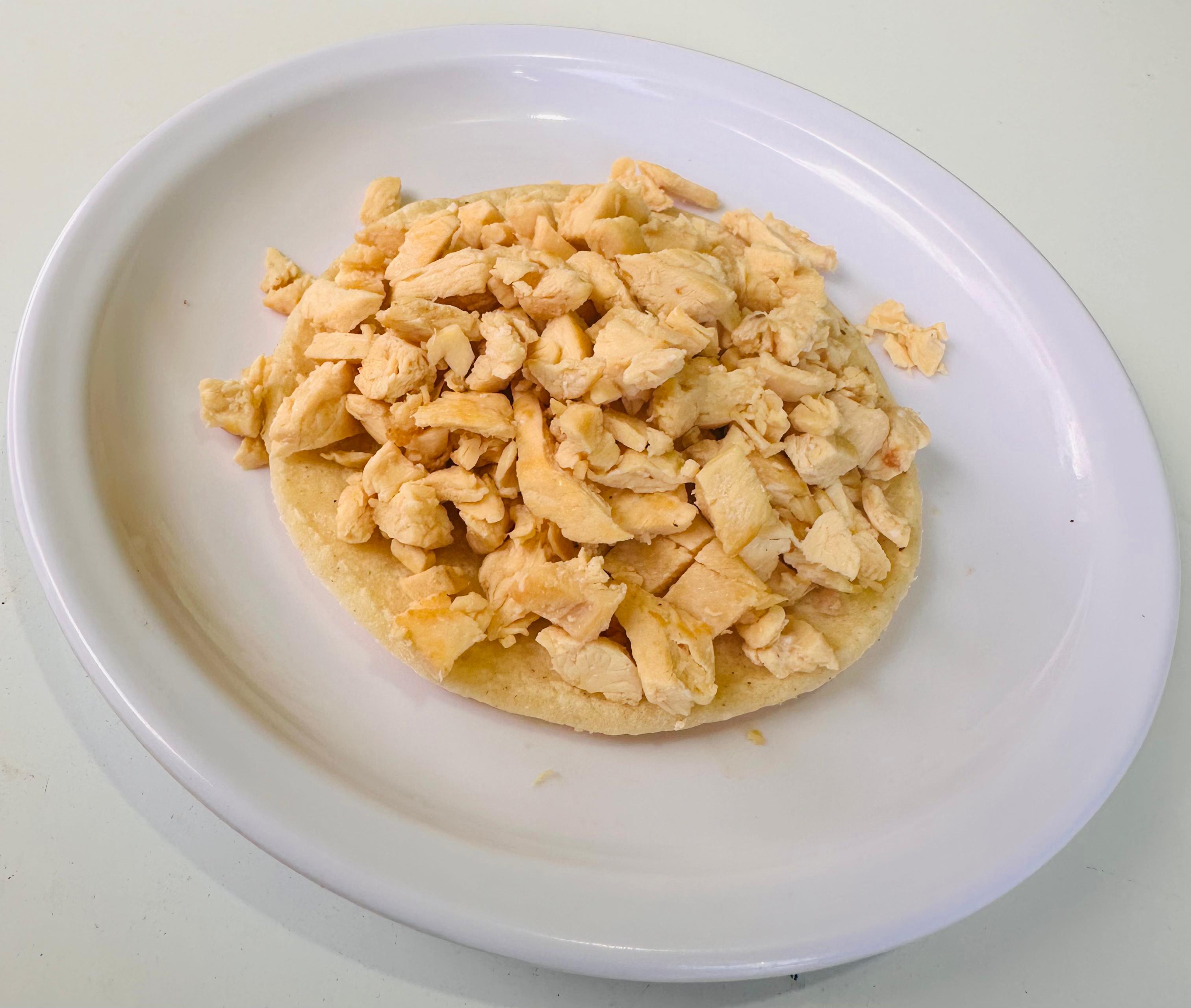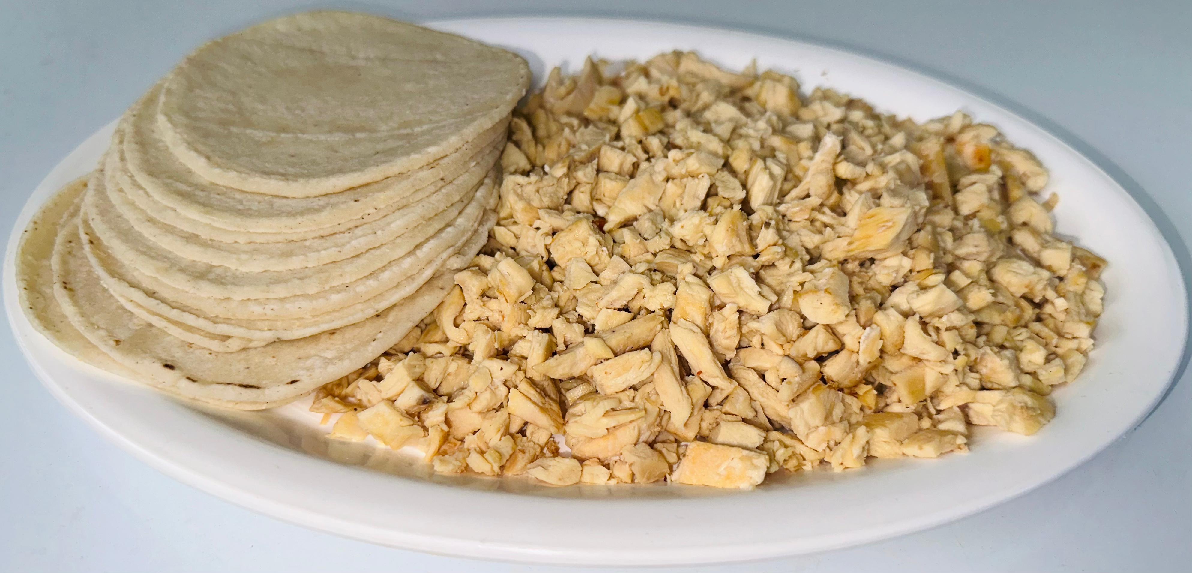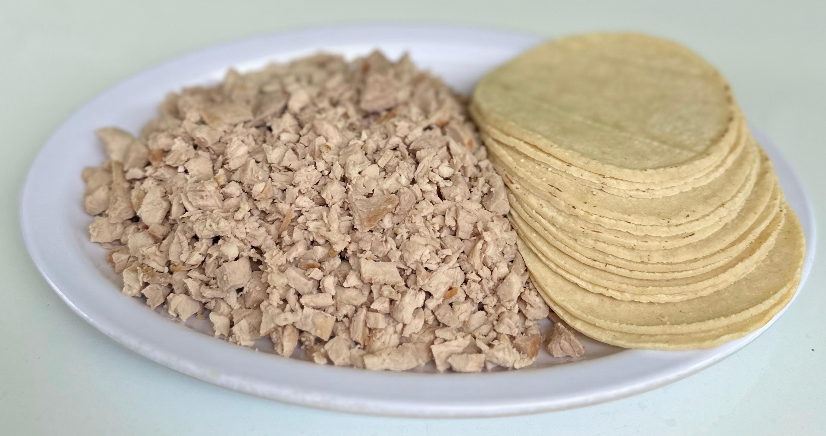 Una porción de pollo para 5 tacos.y queso