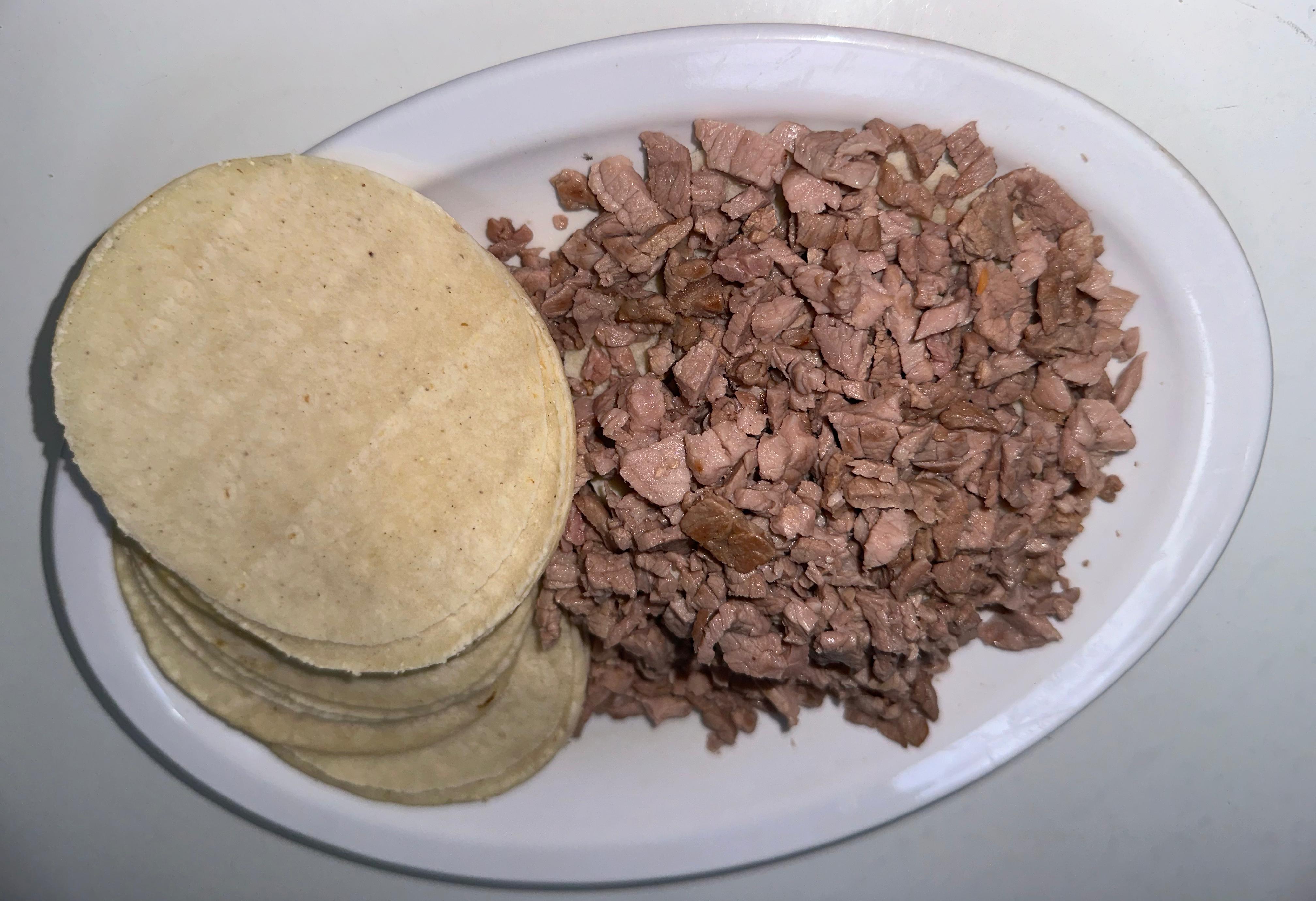 Una porción de chuleta para 5 tacos.y queso