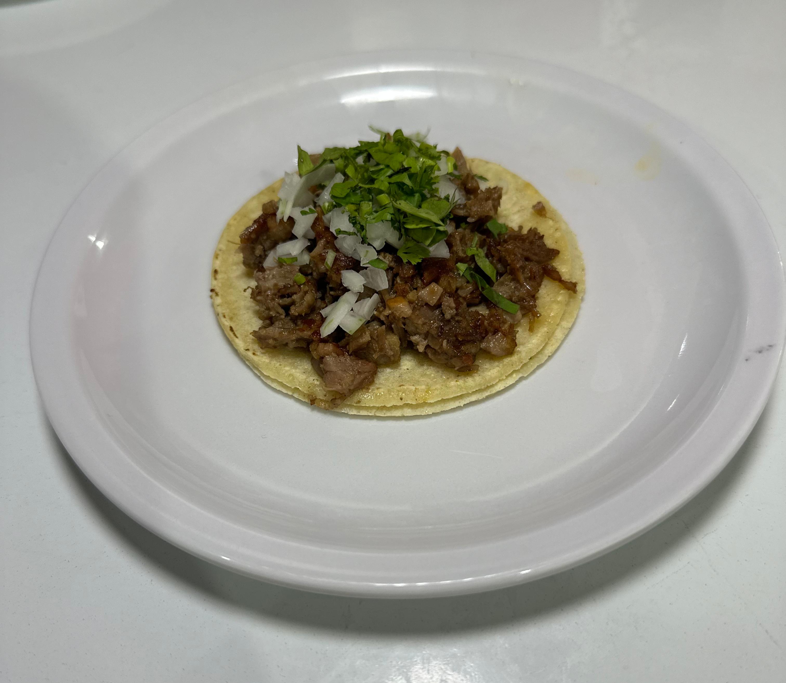Tacos de campechano hechos con tortilla de maíz.