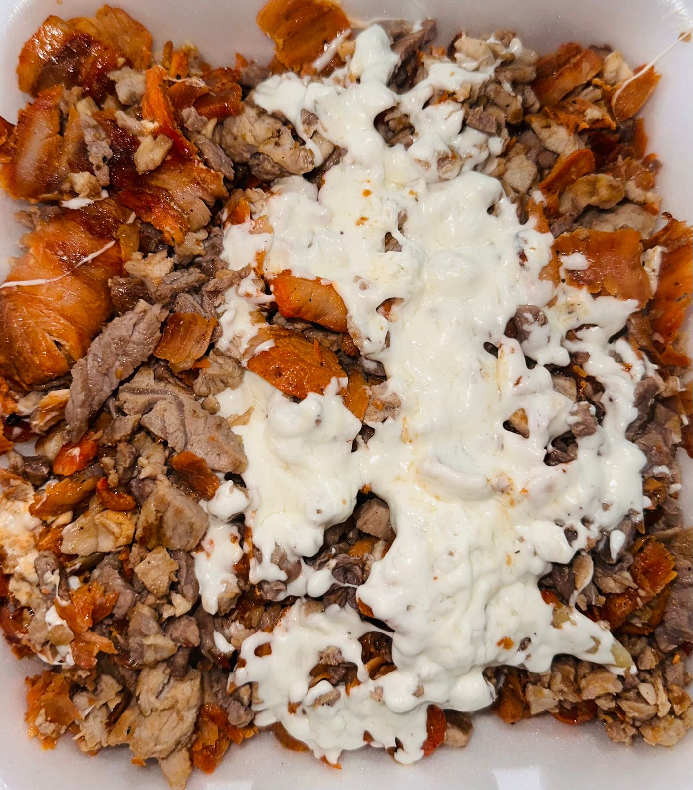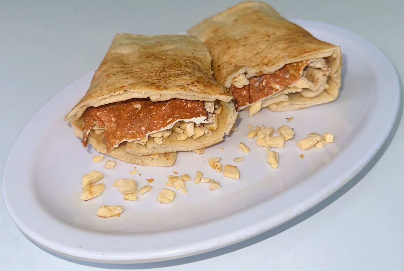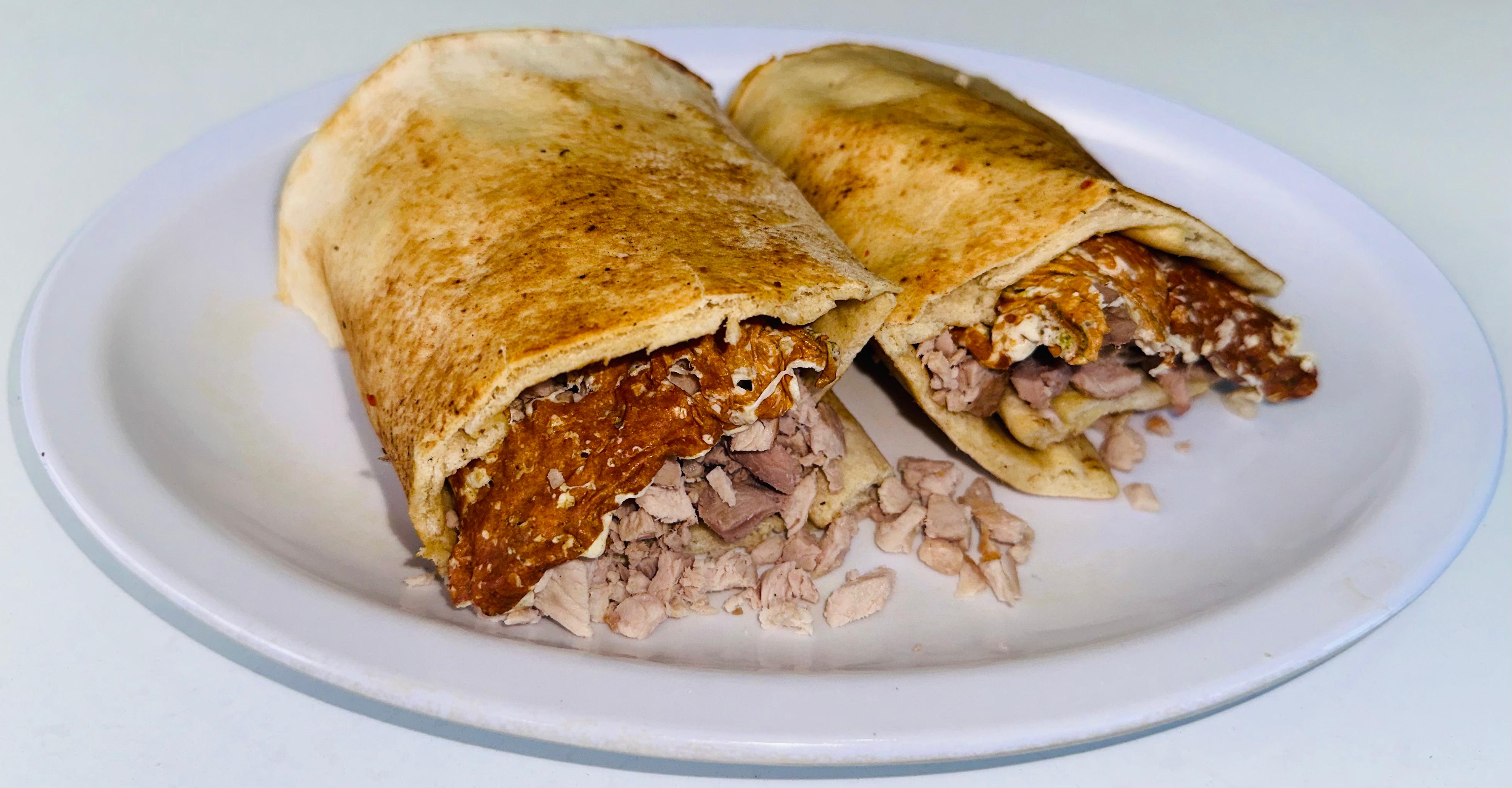 Pan árabe, carne y queso.