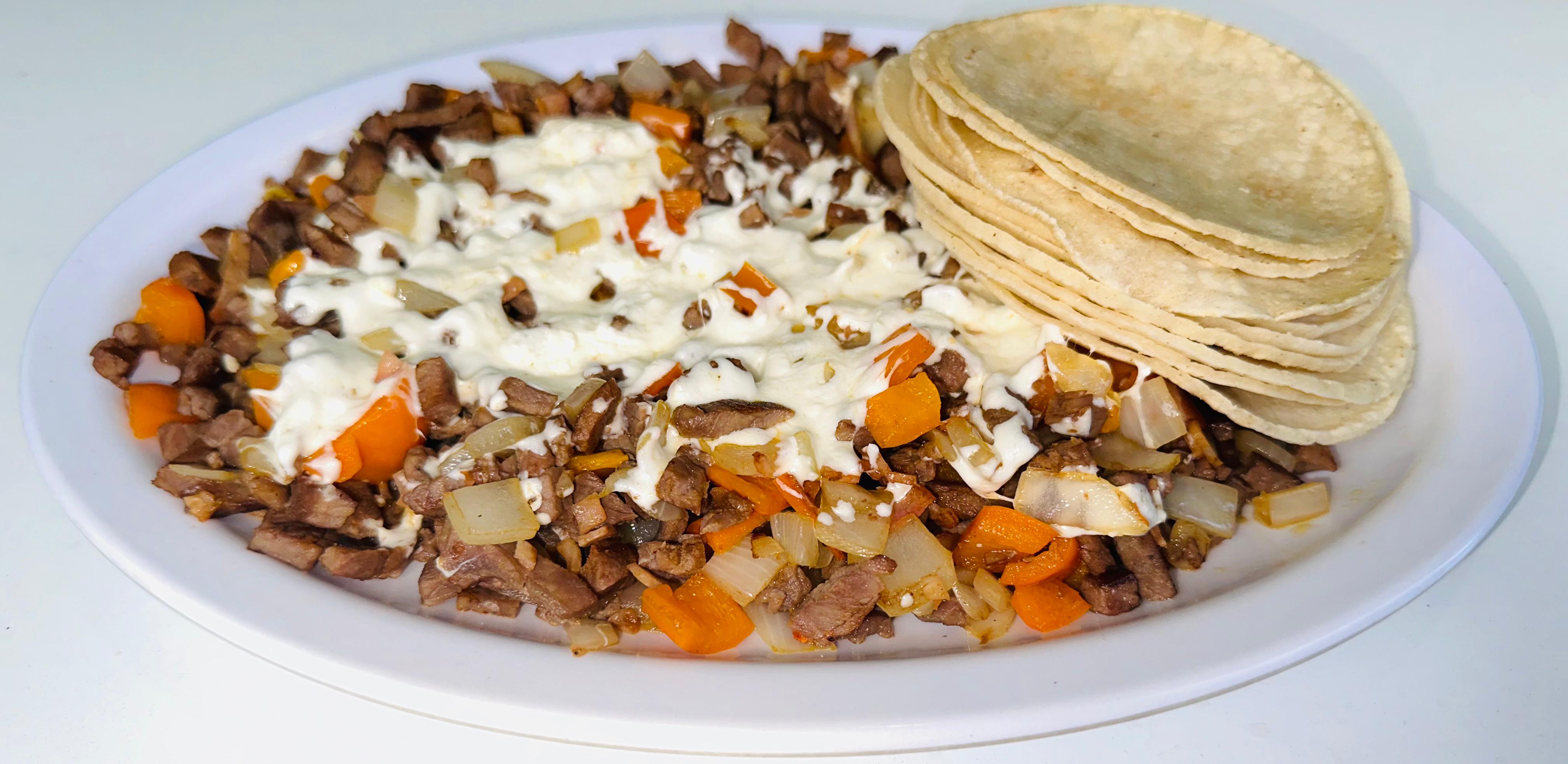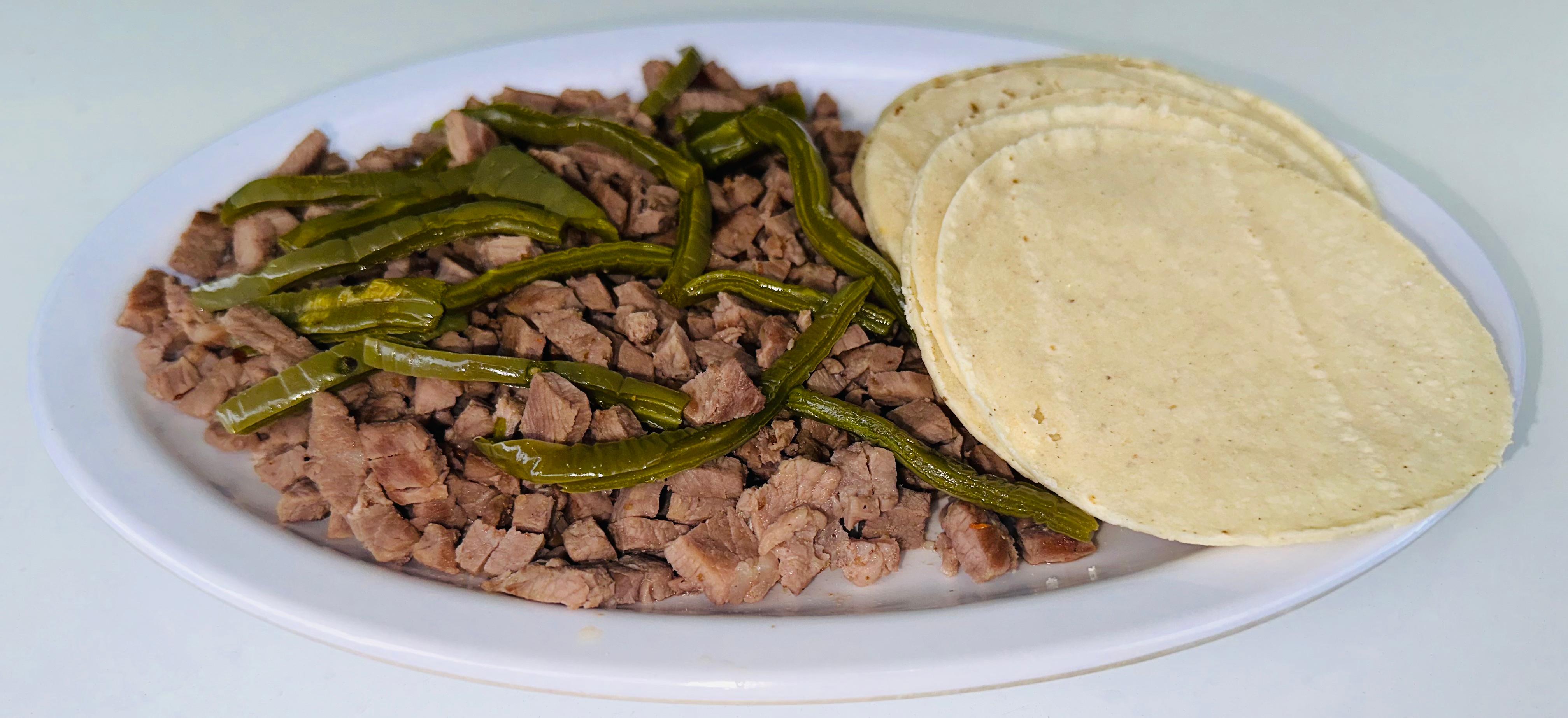 Una porción de carne con nopales para 5 tacos y queso