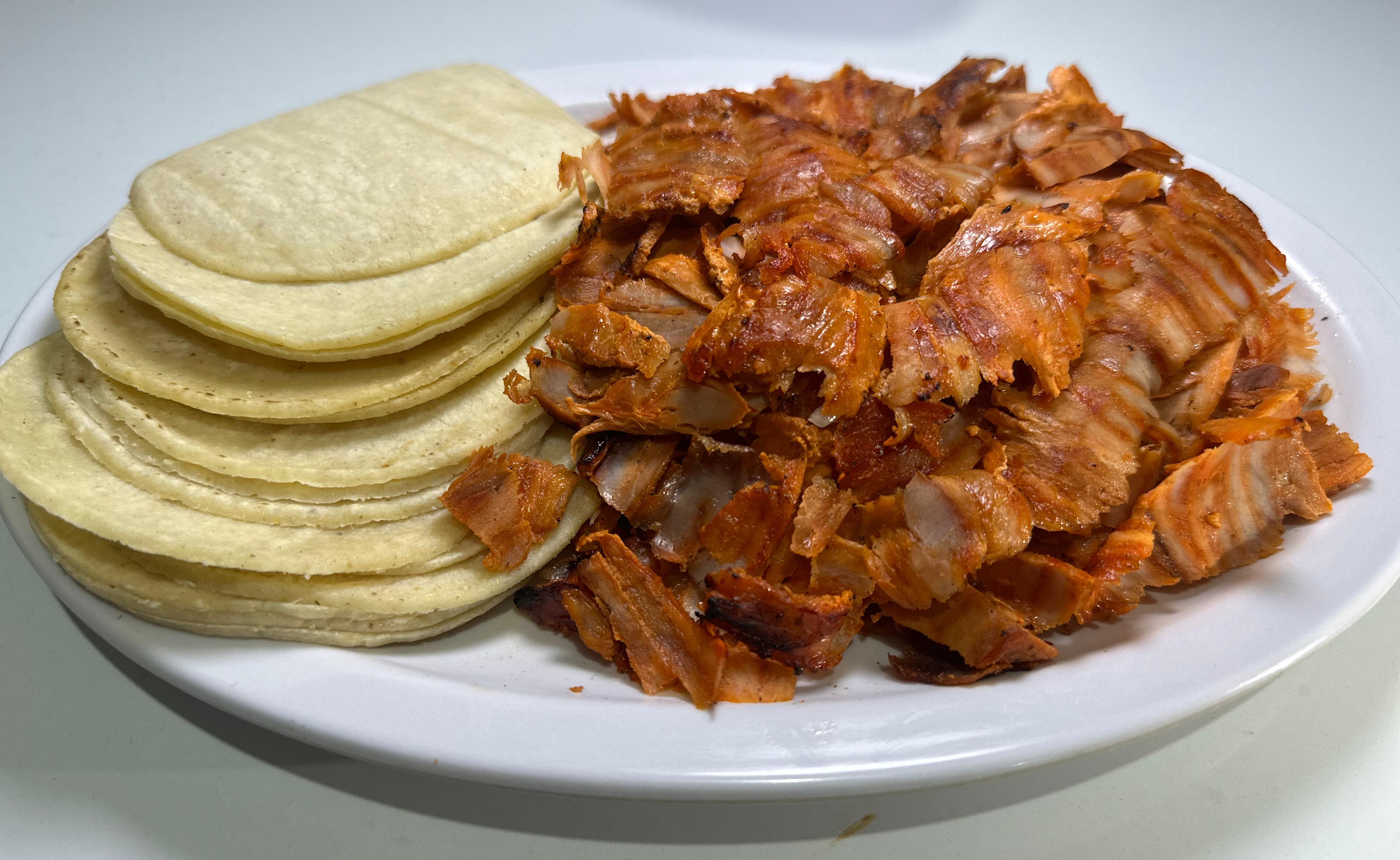 Una porción de pastor para 5 tacos. Y queso