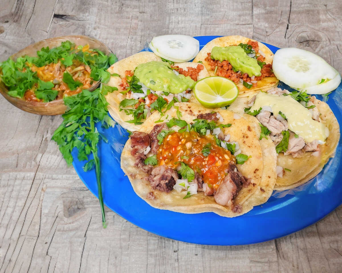 Orden con 2 tacos de suadero, 2 tacos campechanos y 1 taco de longaniza.