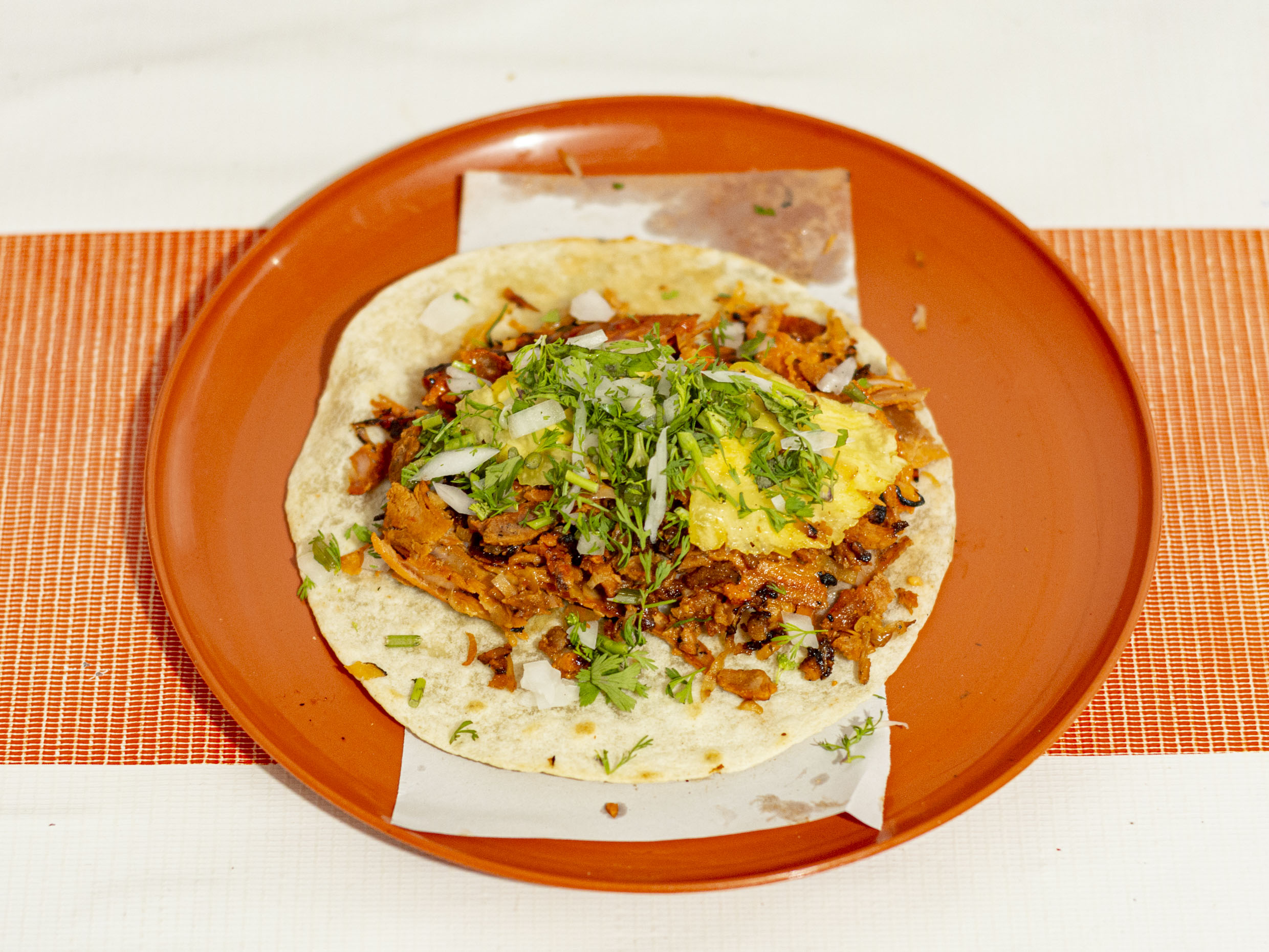 Chuleta, pastor, longaniza, bistec, piña, aguacate y queso.