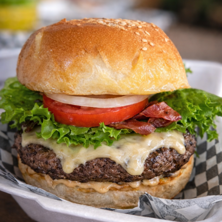 Carne de res, queso mozzarella fundido, BBQ lechuga fresca, jitomate y nuestro aderezo especial.
