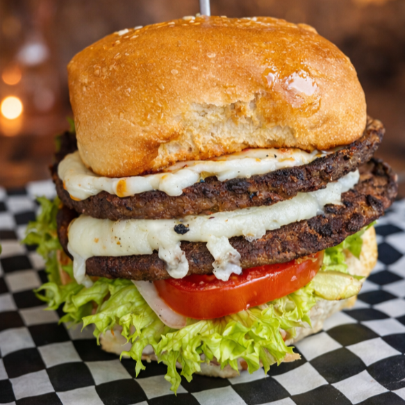 Doble carne de res, doble queso mozzarella fundido, lechuga fresca, jitomate y nuestro aderezo especial.