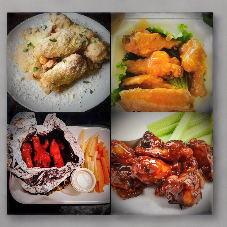 Deliciosas alitas 100% naturales marinadas a la perfección; hechas al momento de tu orden logrando una perfecta cocción y consistencia; crujiente por fuera y suave por dentro; servidas con crudites y aderezo, elije hasta 3 sabores.