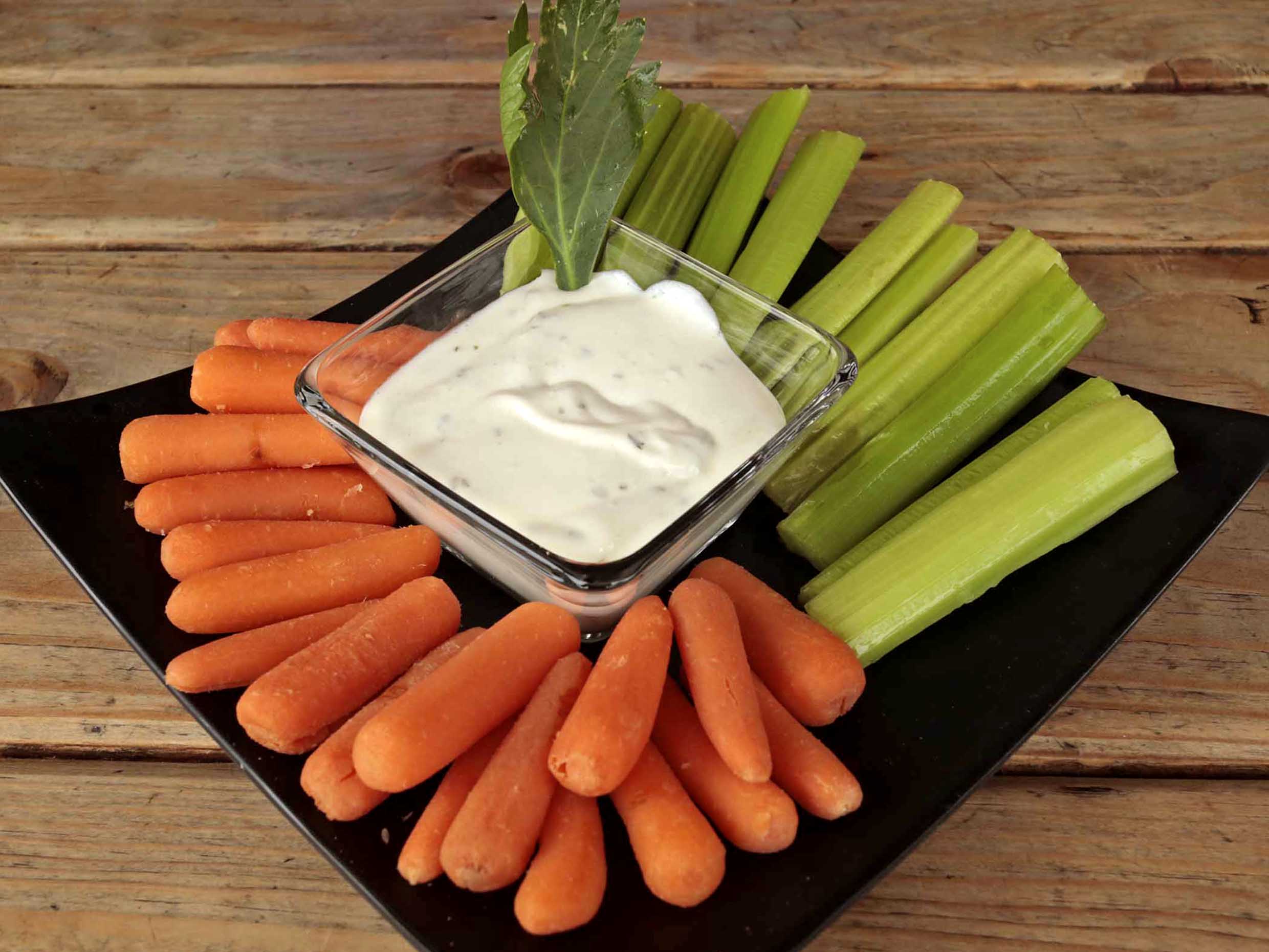 20 bastones combinados de verdura fresca (apio y zanahoria) acompañados de aderezo ranch o blue cheese.