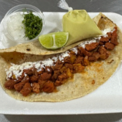 Disfruta una tortilla artesanal de maíz blanco, recién hecha en comal de barro, con el auténtico sabor casero mexicano. Acompañada de una jugosa tinga de pollo, sazonada con tomate, cebolla y un toque especial de la casa. Personalízala a tu gusto con tus salsas y complementos favoritos.
