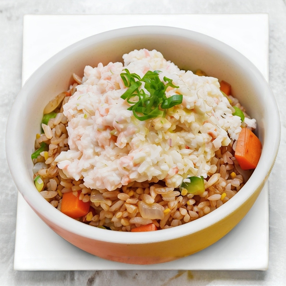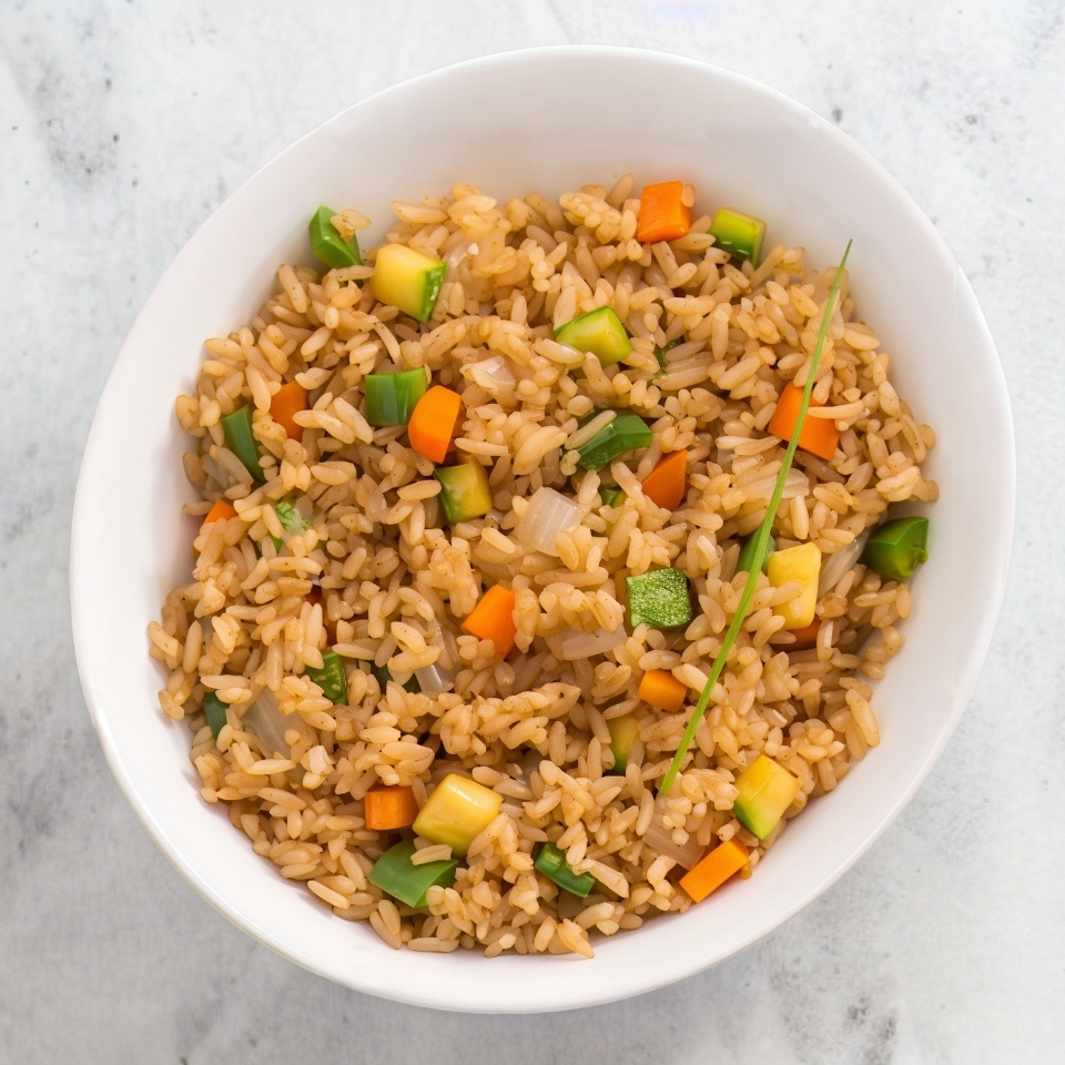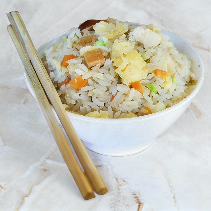 Arroz frito con verduras, Huevo, Pollo y Camarón.