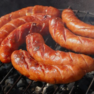 Torta de salchicha con frijoles refritos, mayonesa, lechuga, aguacate, jitomate y cebolla.