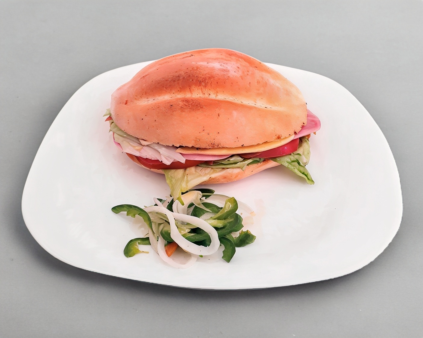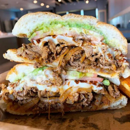 TELERA GRANDE, MILANESA DE POLLO,LONGANIZA, JAMON. QUESO OAXACA , SALCHICHA, FRIJOLES REFRITOS, MAYONESA, LECHUGA, JITOMATE, CEBOLLA, CHILE E VINAGRE.