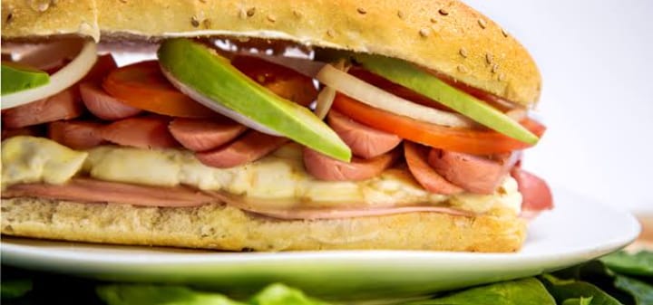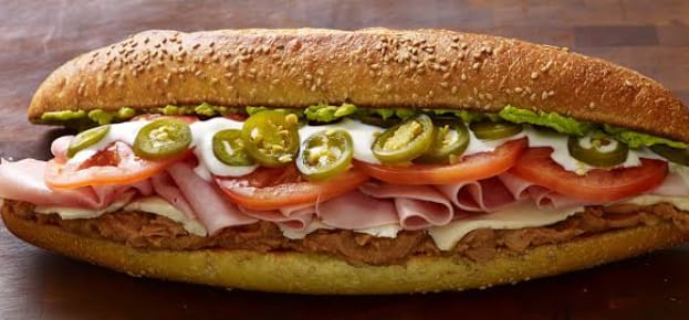 Mayonesa, jamón, queso, jitomate, lechuga, aguacate y cebolla.