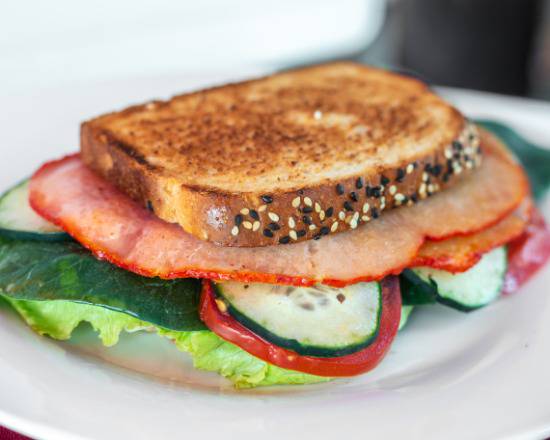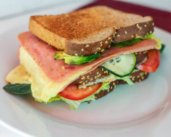 "Contiene tres panes integrales, el del medio lleva un huevo estrellado, incluye también espinaca, queso manchego, jamón, mayonesa, chile, cebolla, jitomate y lechuga. "