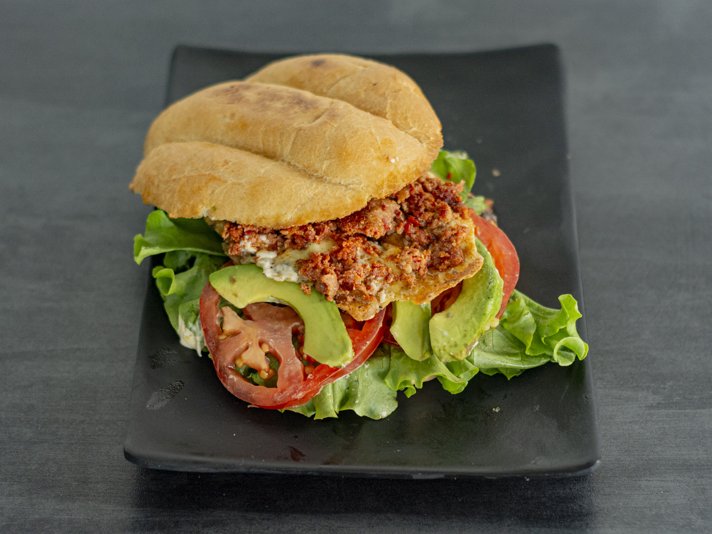Hamburguesa de carne de res a la plancha y queso manchego.