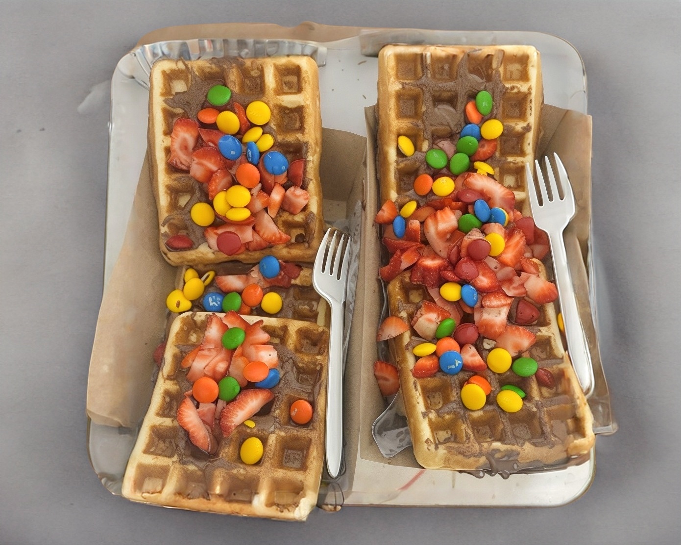 Deliciosos waffles cuadrados, preparados con masa de la casa