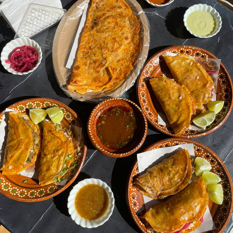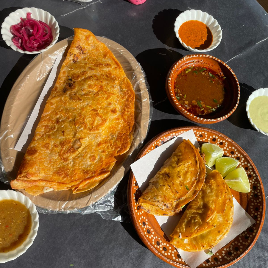 I kg de birria con tortillas y aditamentos, 4 quesabirrias de maíz , 2 de harina