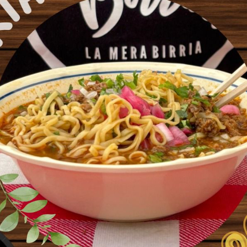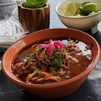 Plato de birria caldoso estilo Jalisco, con tortillas