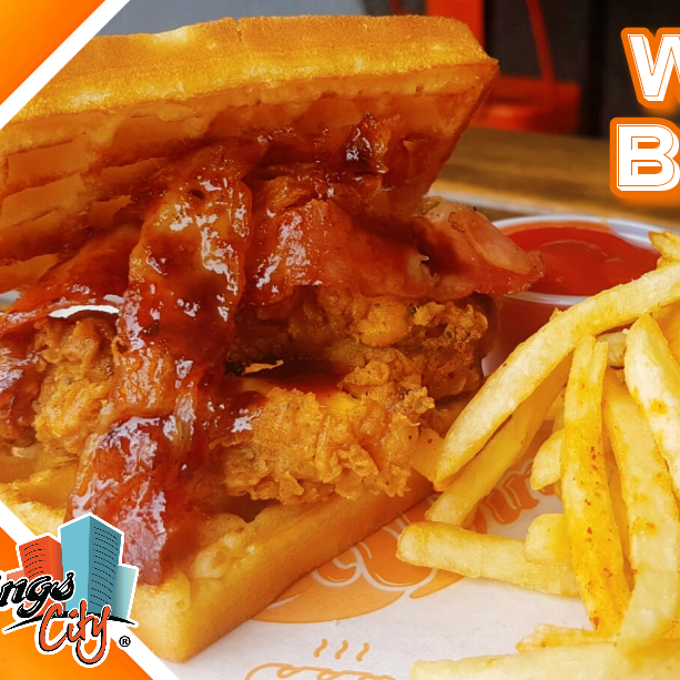 Crujientes aros de cebolla sobre tu carne, queso manchego, bañada en nuestra tradicional salsa wings city. Todas nuestras hamburguesas vienen acompañados de 110 gramos de wings city fries.