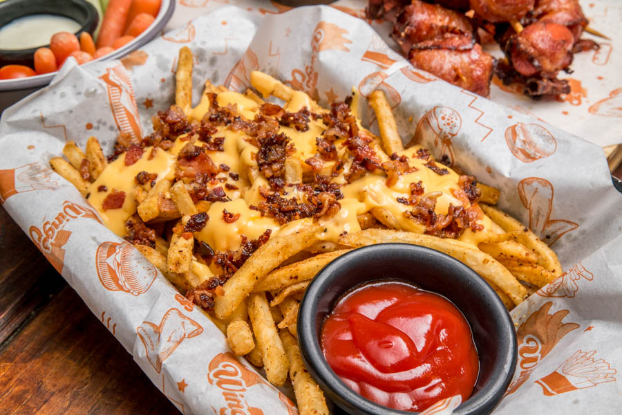 Directo de la ciudad de los vientos papas fritas, queso cheddar y delicioso relish, no te lo querrás perder todos nuestros jochos vienen acompañados de 110 gramos de wings city fries.