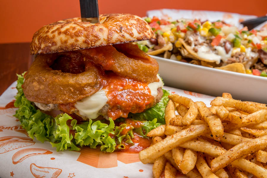 Crujientes aros de cebolla sobre tu carne, queso manchego, bañada en nuestra tradicional salsa wings city. Todas nuestras hamburguesas vienen acompañados de 110 gramos de wings city fries.