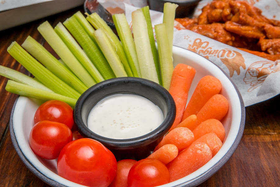 Frescas zanahorias baby, tomates cherry y apios, acompañados de nuestro delicioso aderezo.