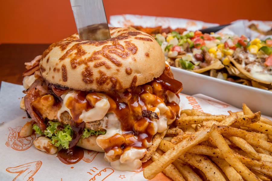 Deliciosa receta de mac & cheese bañada de nuestra salsa BBQ acompañada de tiras de tocino para chuparse los dedos. Todas nuestras hamburguesas vienen acompañados de 110 gramos de wings city fries.