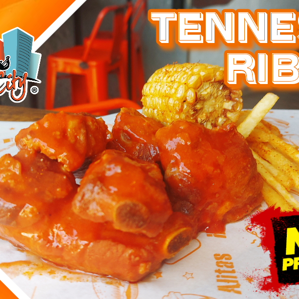 Costillas de cerdo, escoge entre a gran variedad de salsas para perderte en su sabor, acompañadas con elote natural sazonado y papas a la francesa.