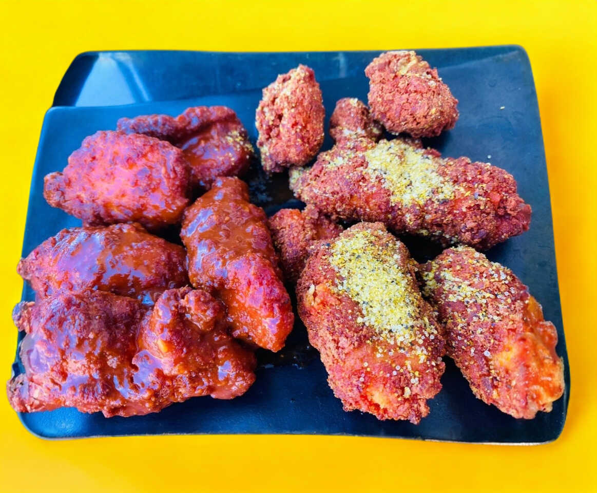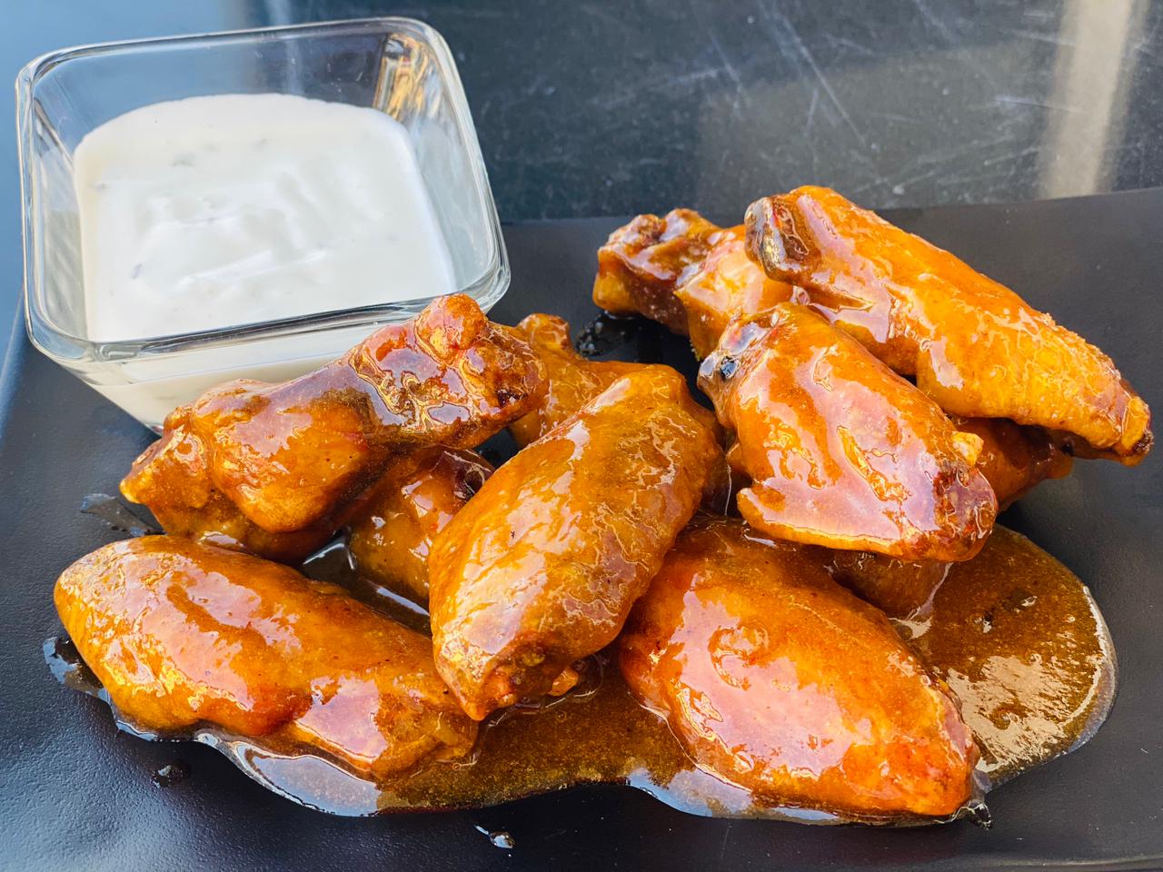 5 Deliciosas alitas, 1 sabor a elegir, incluye 1 aderezo rach.