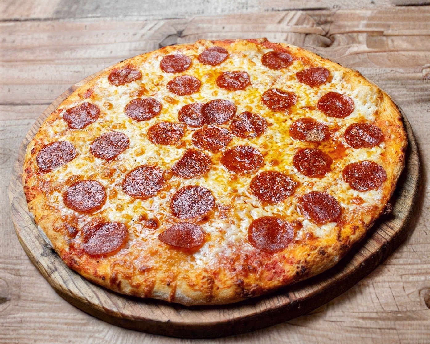 Mezcla de quesos, salsa pomodoro, salami, jamón y tocino.